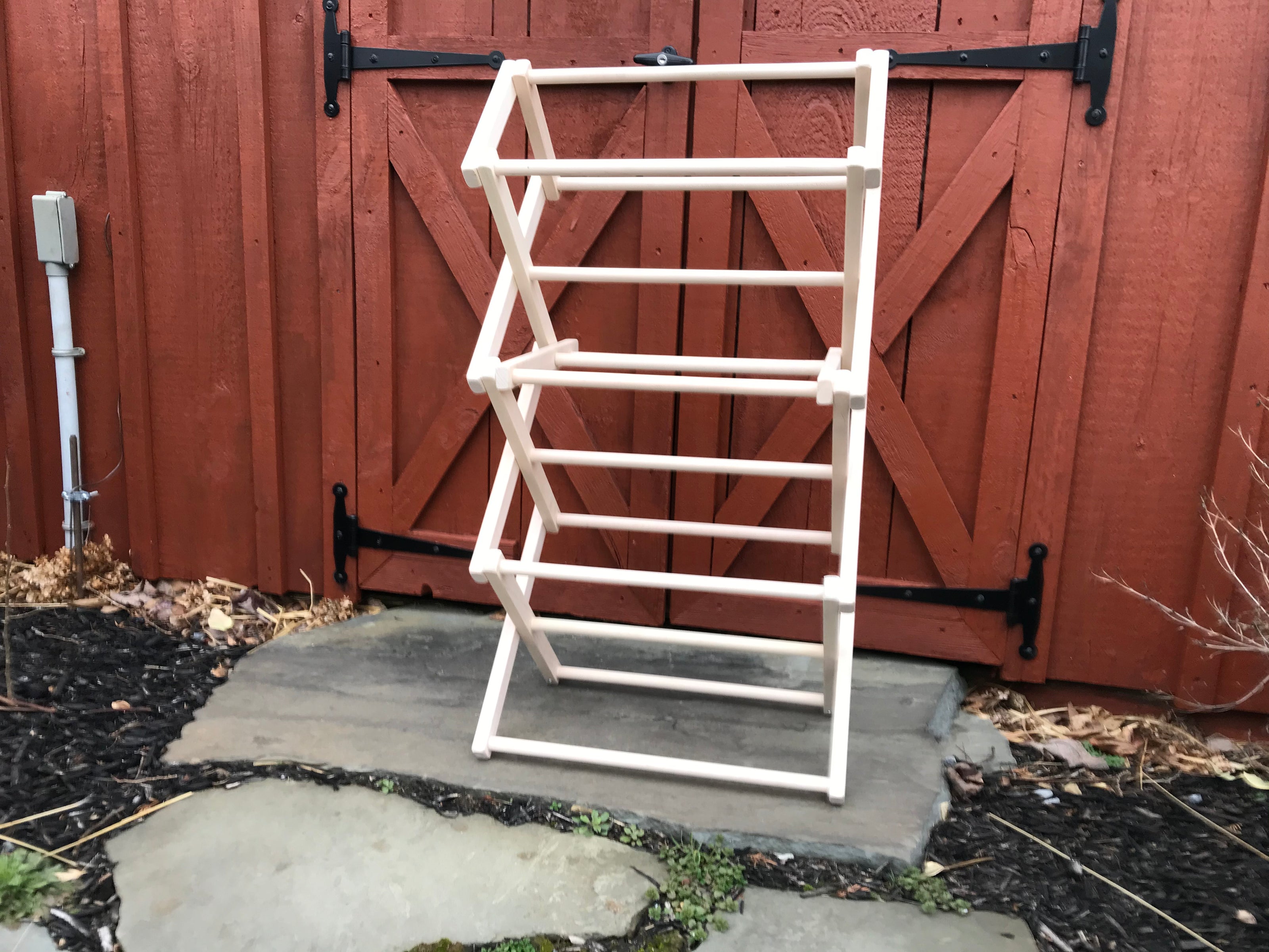 Shop nowThis is my 3rd one. Beautiful workmanship. Worth the money. It is a 30-inch wide, maple drying rack. Meets all my expectations 100%!