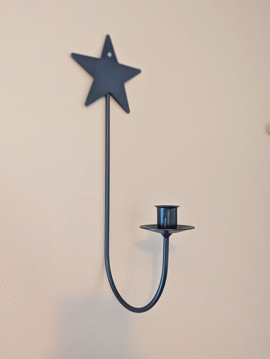 Star themed wall sconce - taper candle - wrought iron - amish made