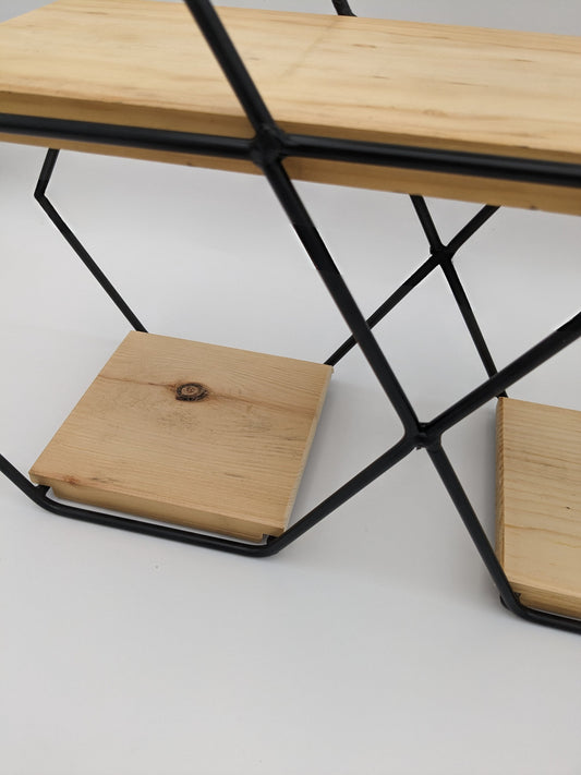 Wrought Iron Hexagon Shadow Box with Wooden Shelves