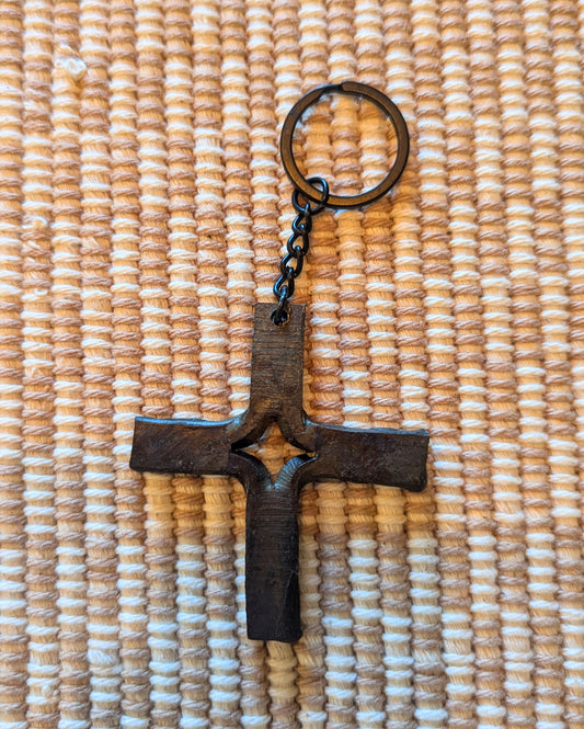 Amish made Forged Steel Keychain - Religious Cross, Heart, Horseshoe. Vintage Backpack/Book Bag, Gift 4 Horse Lovers, Love, Stocking Stuffer