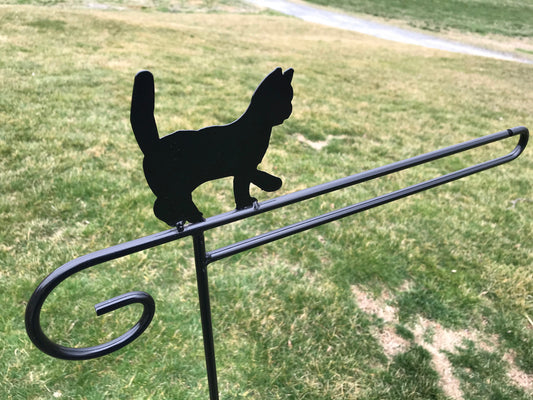 Amish Handmade Cat Flag Holder Stand - Heavy Duty Powder Coated Wrought Iron