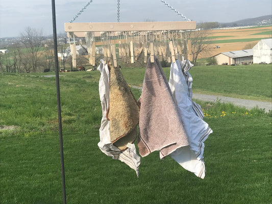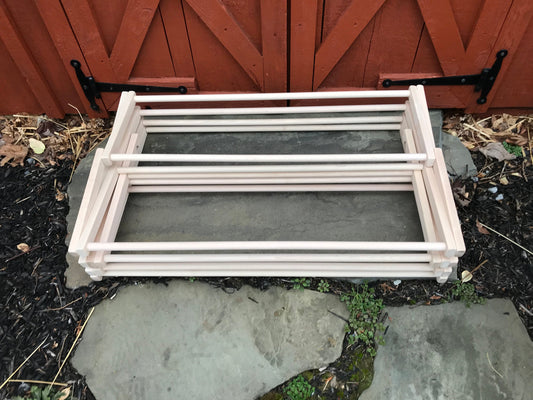 We offer multiple different sizes and variations of amish made drying racks! You can order them already assembled or as a kit. These are perfect for travel and compact so you can store them away when not in use!