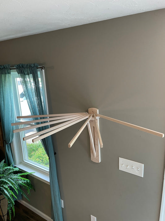 Folding Spiral Wooden Clothes Drying Rack - 26 feet of drying space - Amish Made