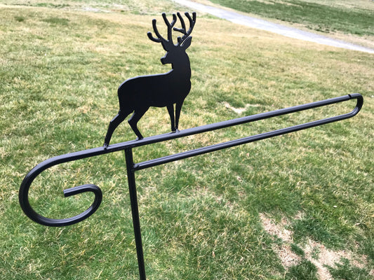 Buck Flag Holder stand - Made from Heavy Duty Wrought Iron - 36" above ground - Garden Decoration