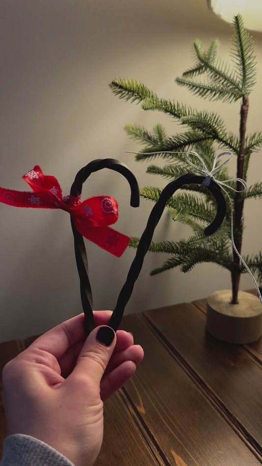 Hand-Forged Steel Candy Cane Ornaments by Amish Blacksmith - Rustic Charm for Farm, Ranch, Barn, Homestead, or Christmas Holiday Decor