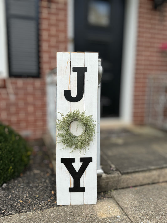 Christmas JOY Sign with Wreath–Barn Wood Holiday Art, Christian Art, Winter Decor, Christmas Decoration, Indoor-Outdoor Decor, Gifts for Her