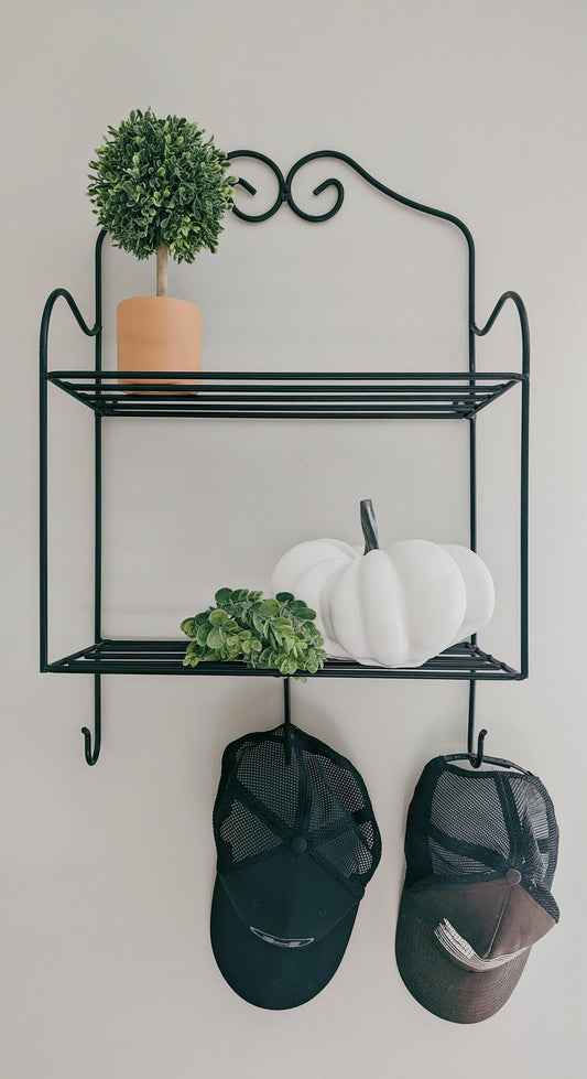 Wall Mount 2 Shelf Unit with 3 Coat Hooks- Wrought Iron Amish made USA