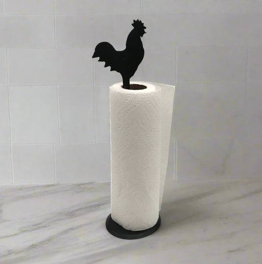 Rooster Paper Towel Holder - Wrought Iron - 16" high - Amish made