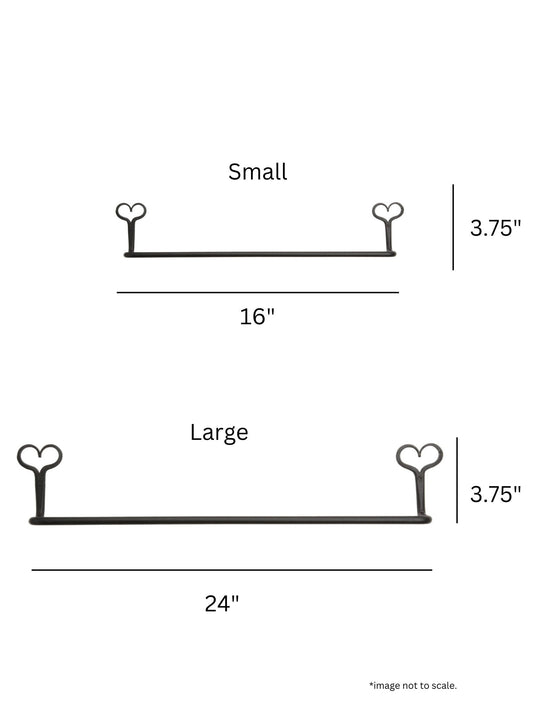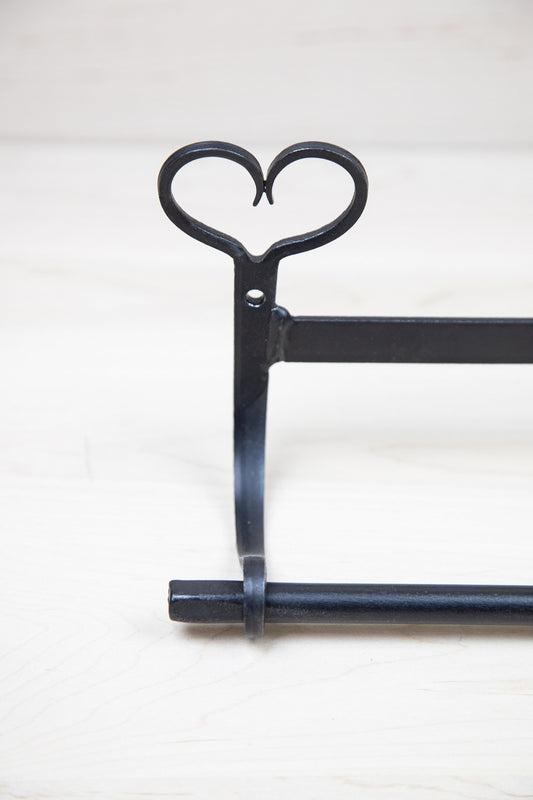 Wall Mounted Towel Bar - heart accents - wrought iron - 16" & 24" - Amish made