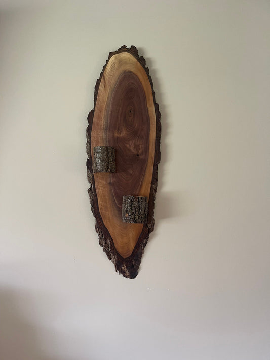 Live Edge Wood Wall Art with Tea Light Candle Holders - Sturdy, Natural Wood - Amish made
