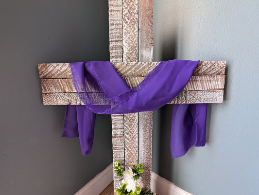 Amish Made Wooden Cross Decor | Wood Lathe Cross with Base | Rustic Farmhouse Christian Home Decor | Small or Large | White or Natural Wood