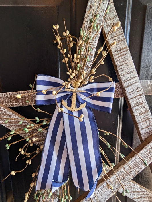 Regular price $50.00 USDRegular priceUnit price / perSale price $50.00 USDRustic Wooden Star w/ Anchor & bow – Whitewashed or Plain, Amish Made Nautical summer Wall Hanging, Farmhouse Decoration