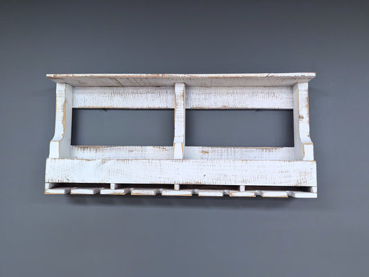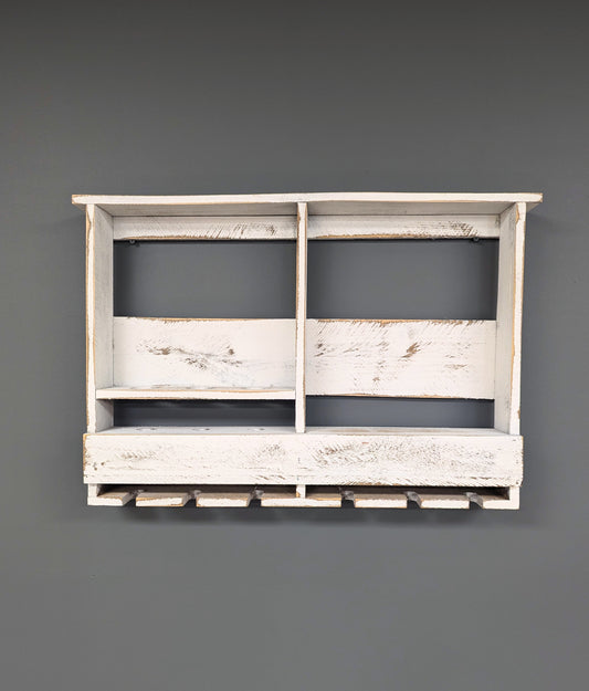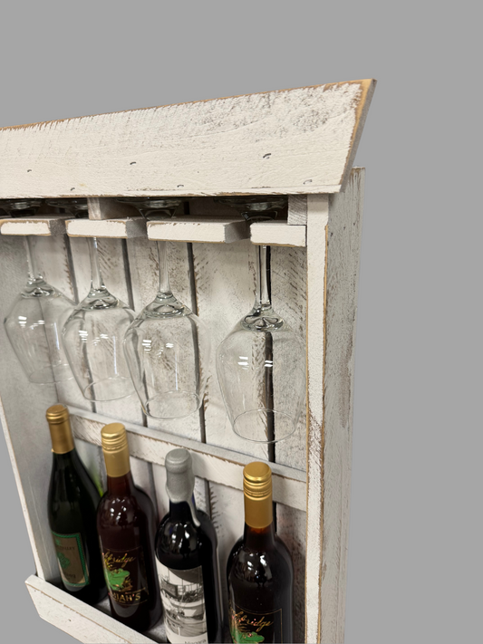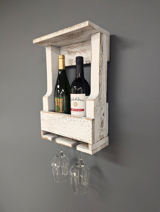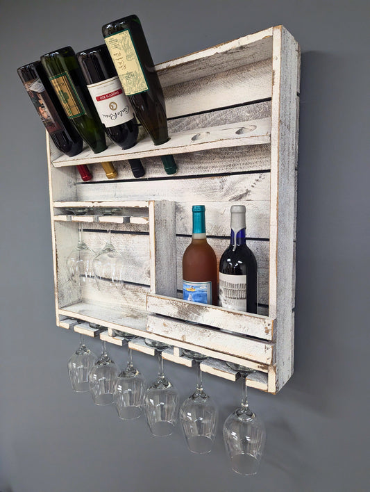 Discover our latest collection of beautifully crafted wooden wine racks, designed to add both function and charm to your space. Available in rustic white or classic dark wood, each piece is expertly made by Amish craftsmen using reclaimed wooden pallets. These sturdy, wall-mounted racks securely hold a variety of wine bottles and glasses, making them a perfect addition to any home bar, kitchen, or dining area. Elevate your wine storage with timeless craftsmanship and rustic elegance.