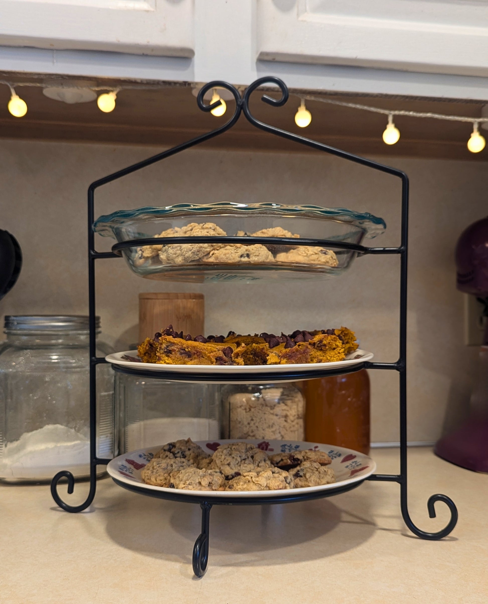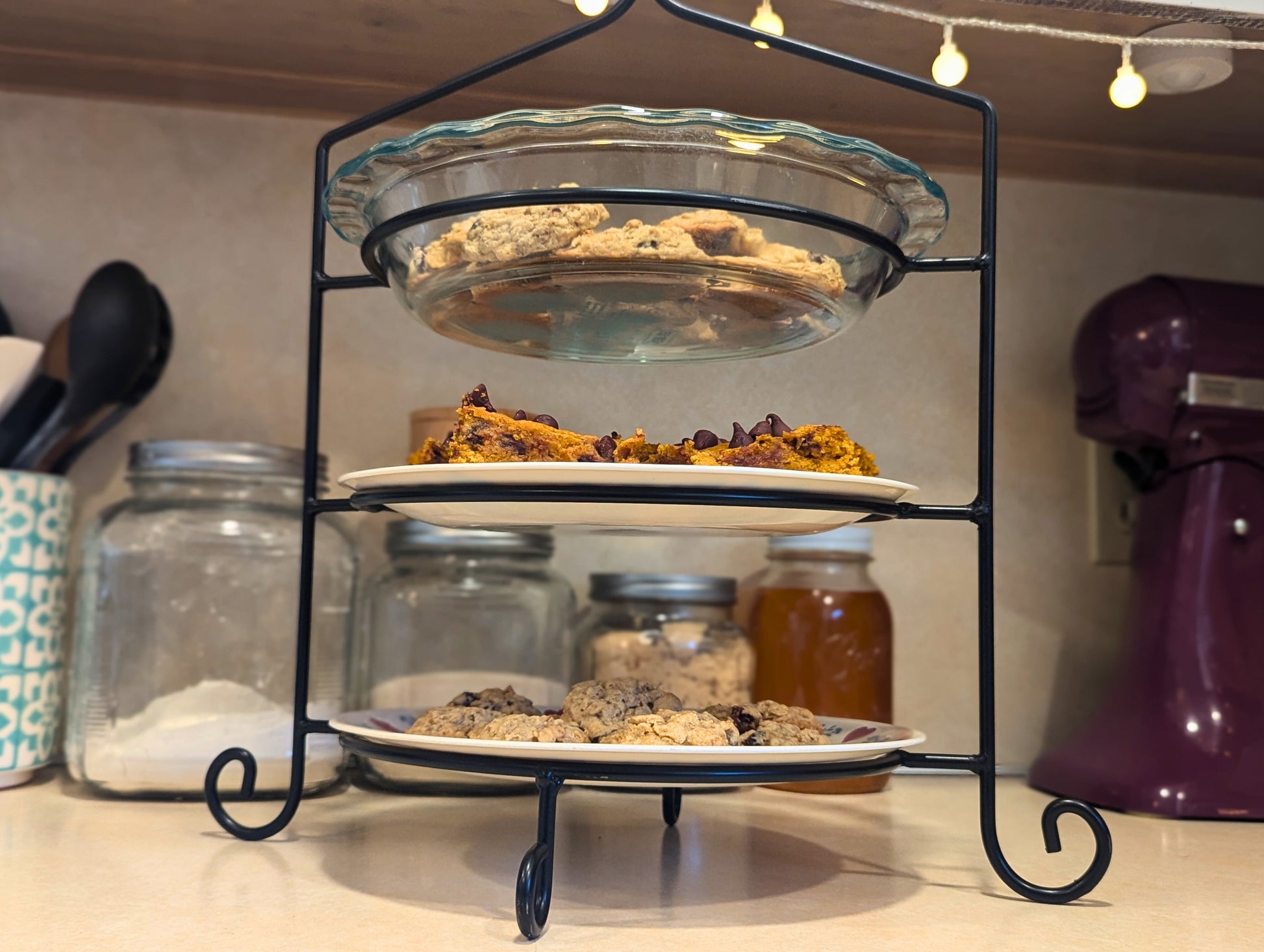 3 Tier Wrought Iron Pie Plate Holder - Holds standard 9" pie plates - Amish Made