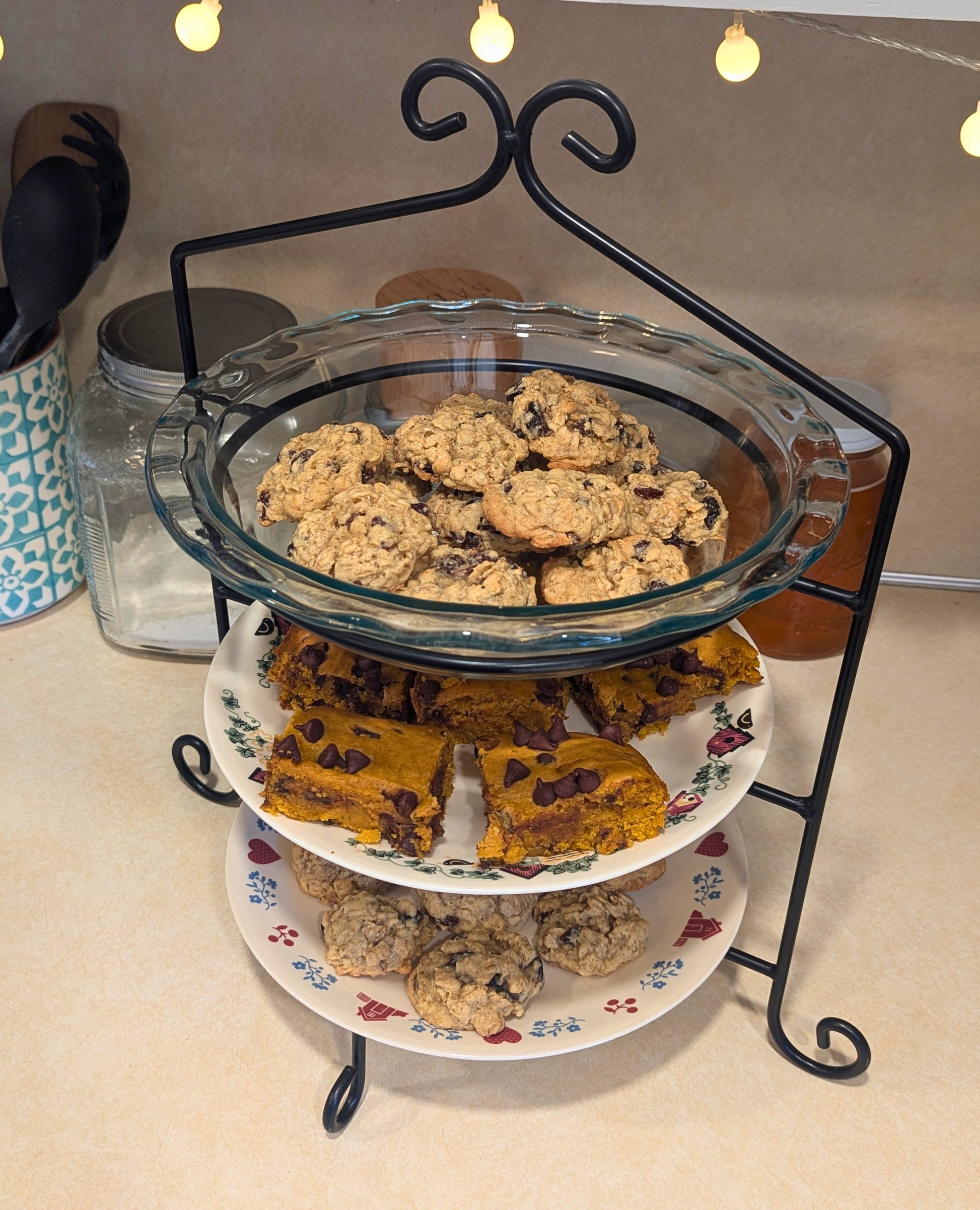 This is a great traditional design stand for holding pie plates, cupcakes plates, and cookie plates.