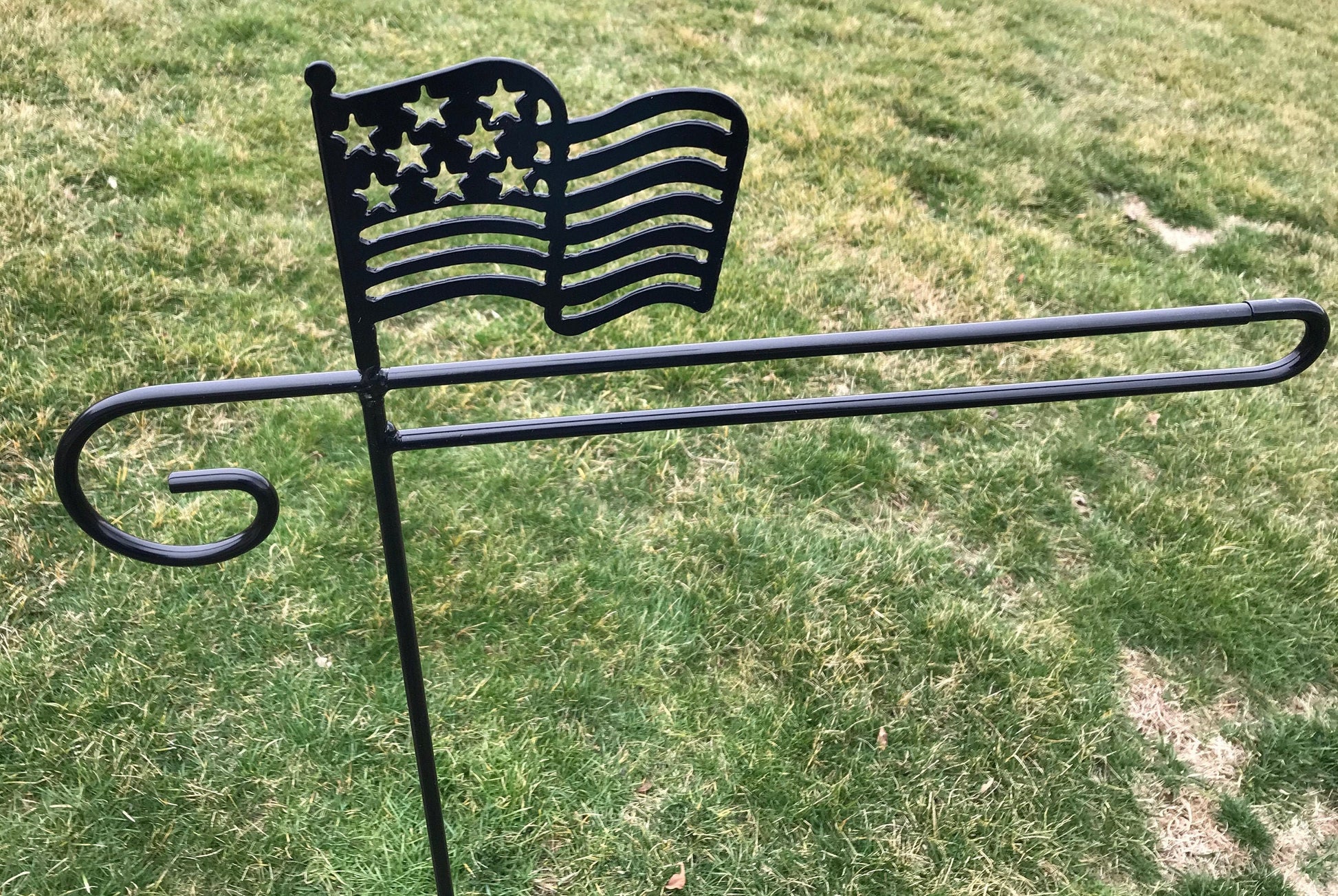 Heavy Duty Wrought Iron American Flag Holder - Garden Decoration Stand - Black Outdoor Metal Yard Flagpole - Amish Made in the USA