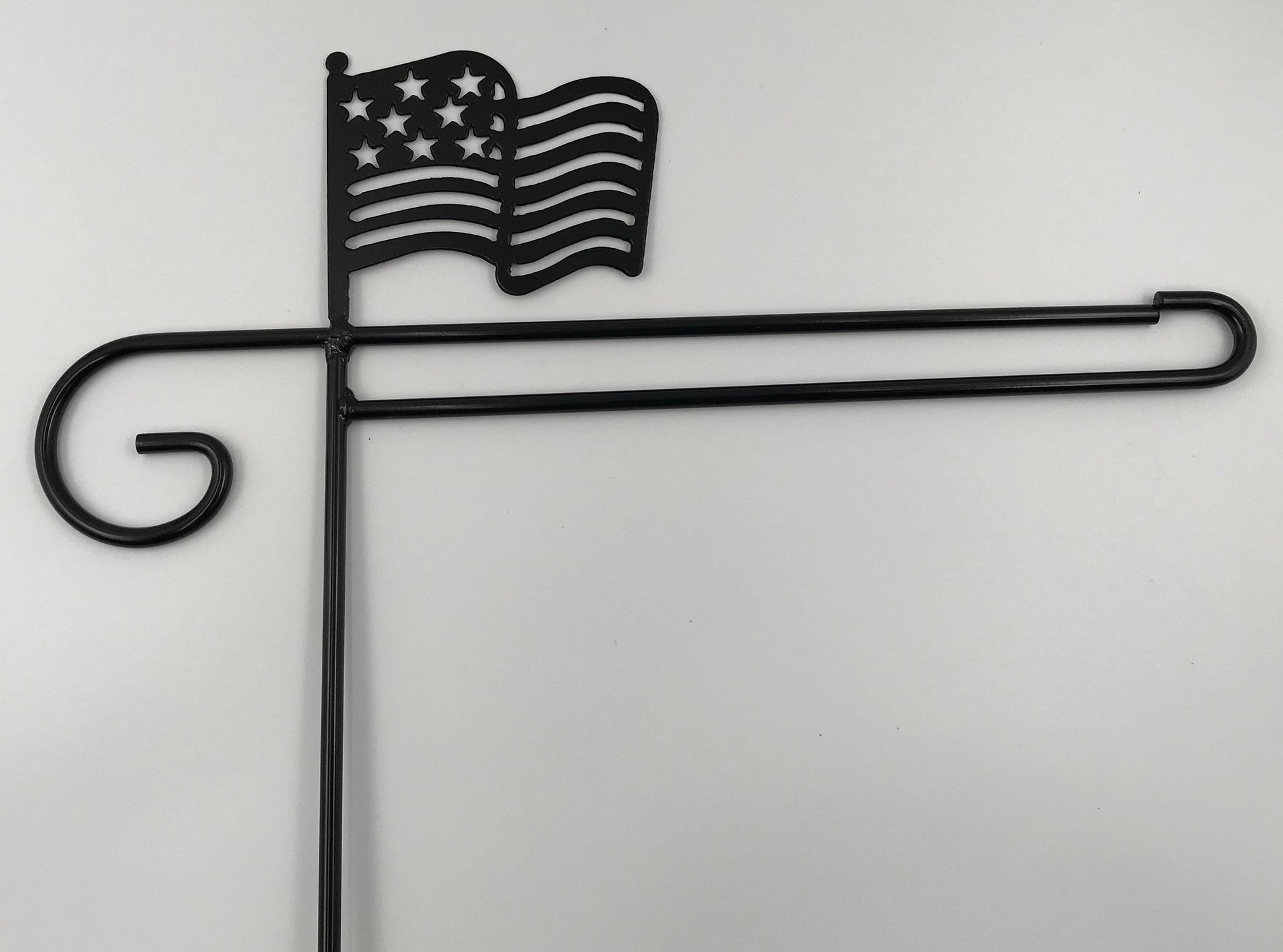 Black Heavy Duty Powder Coated Garden Flag Holder with an American Flag on the top.
