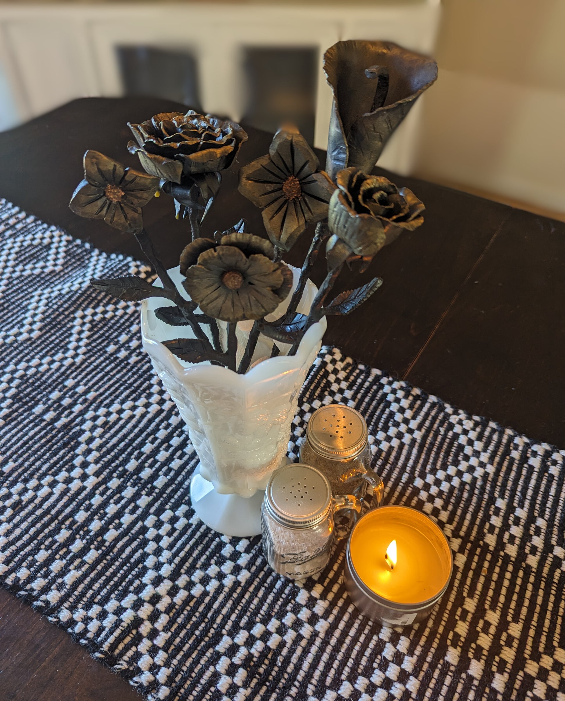 Discover the timeless beauty flowers that will never fade with our Handcrafted Metal Rose, Calla Lily, Petunia, and 4 leafed Wild flower, carefully forged by a skilled Amish blacksmith. The lifelike petals and leaves are carefully shaped and textured using steel scraps and screws, capturing the natural elegance of a real flowers in durable metal. Crafted from steel pieces, bolts and screws, thy are designed to last forever, making it a perfect symbol of everlasting love or a unique decorative piece for your home.