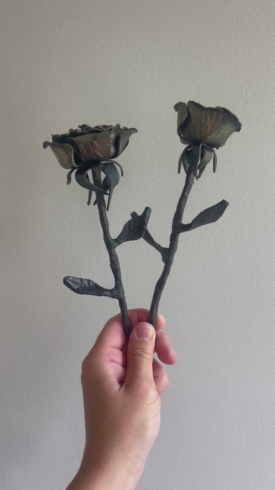 Each petal and leaf is individually hand-forged and assembled, ensuring that no two flowers are exactly alike. Upon finish, every flower is coated in beeswax - a preservative that keeps them from rusting.