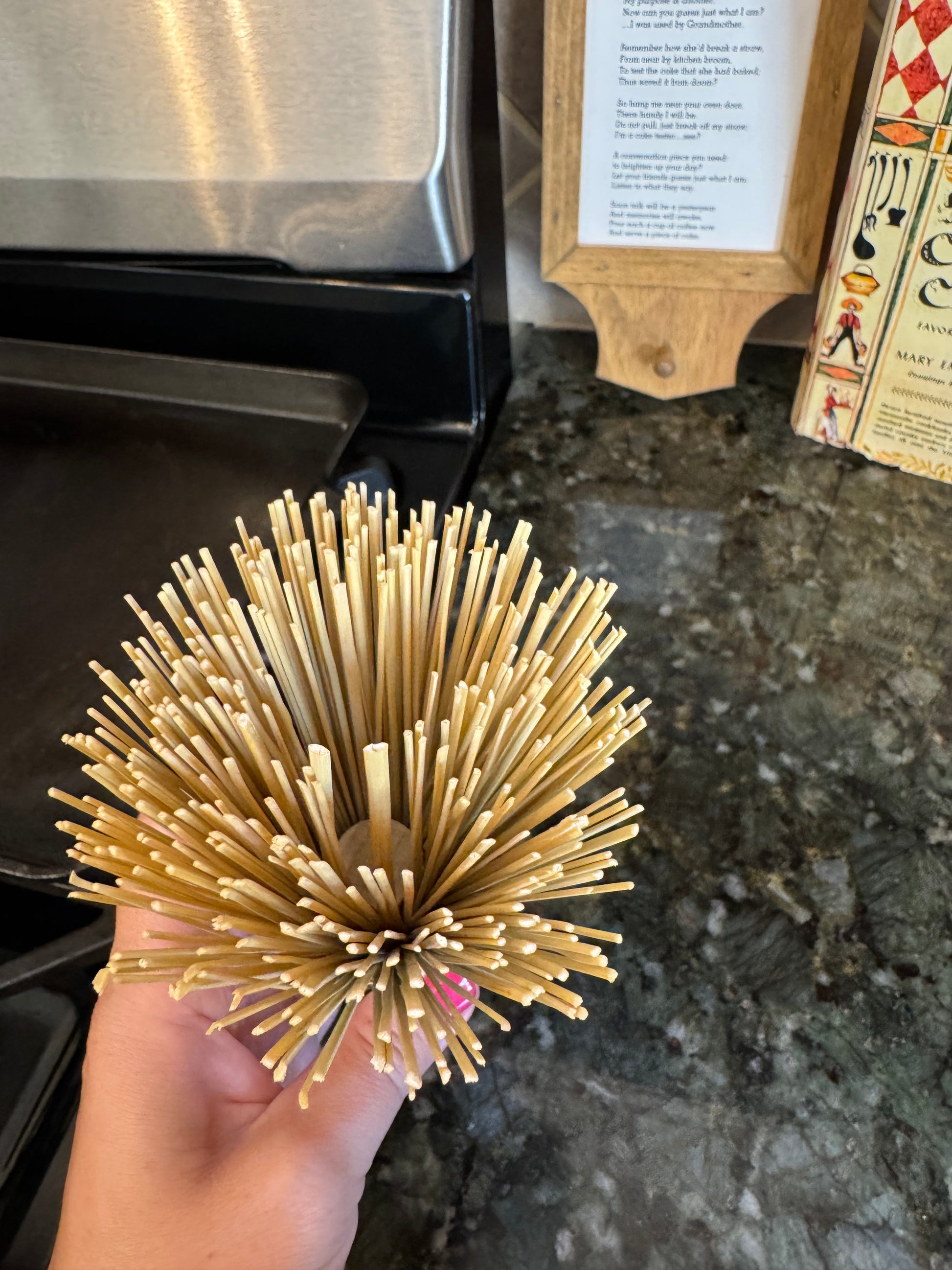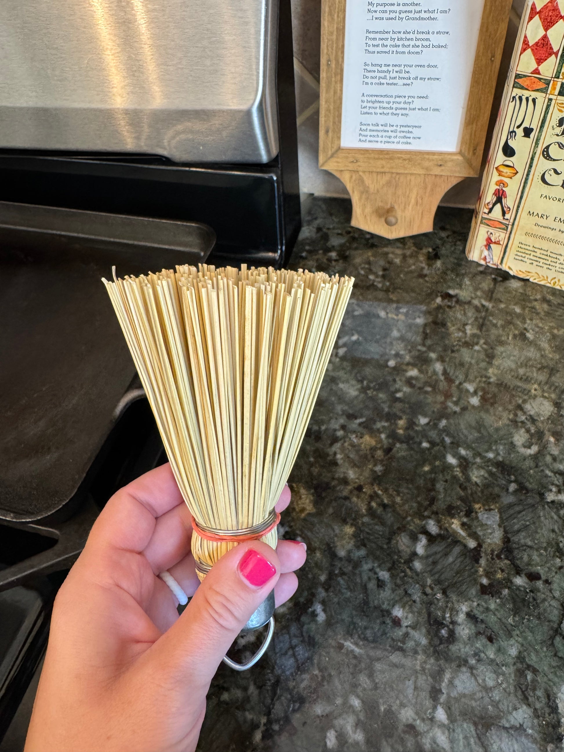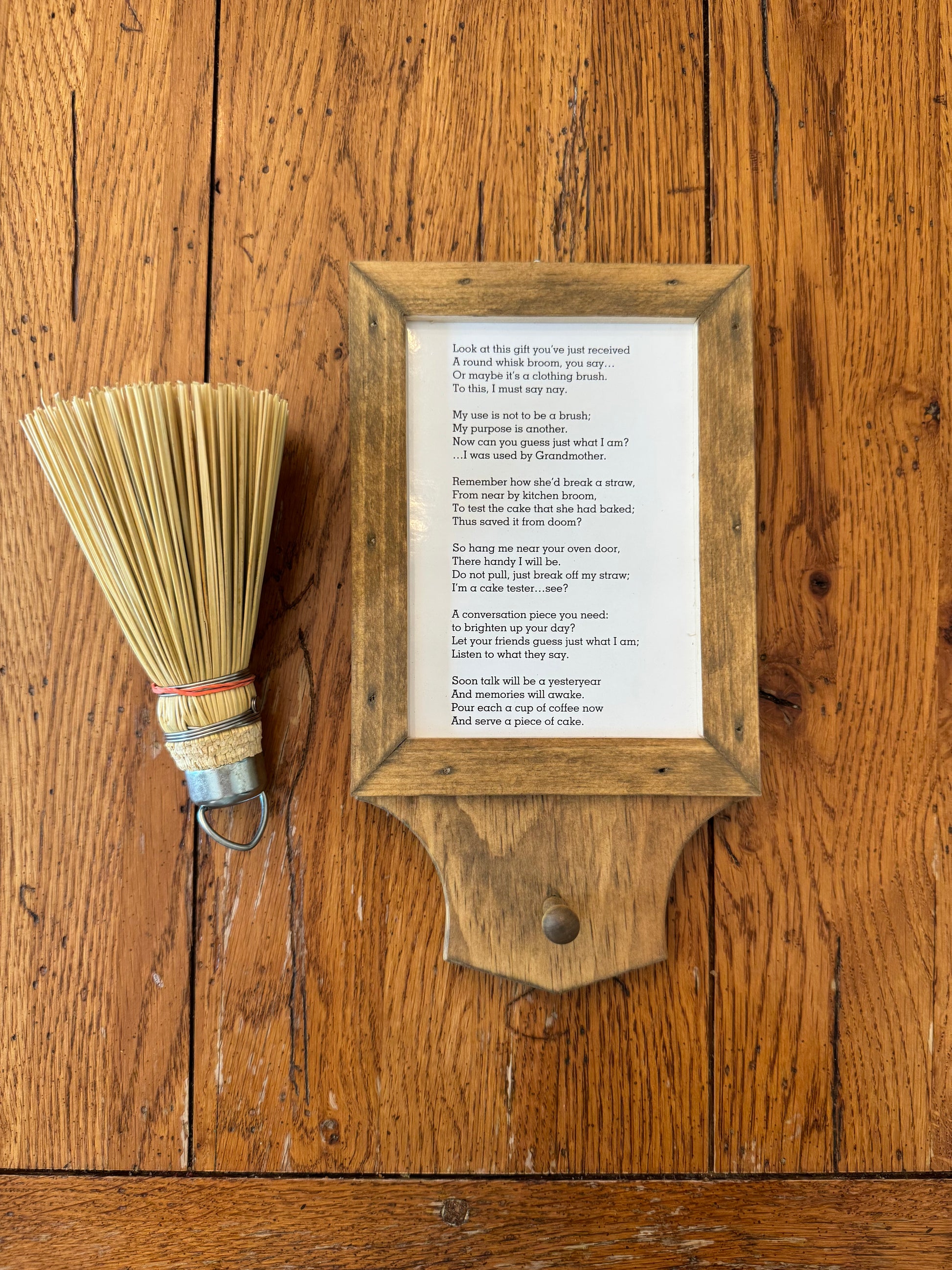 Simply hang it near your oven, and when it’s time to check if your cake is done, break off a piece of the corn broom to test the center—just like Grandma used to do.