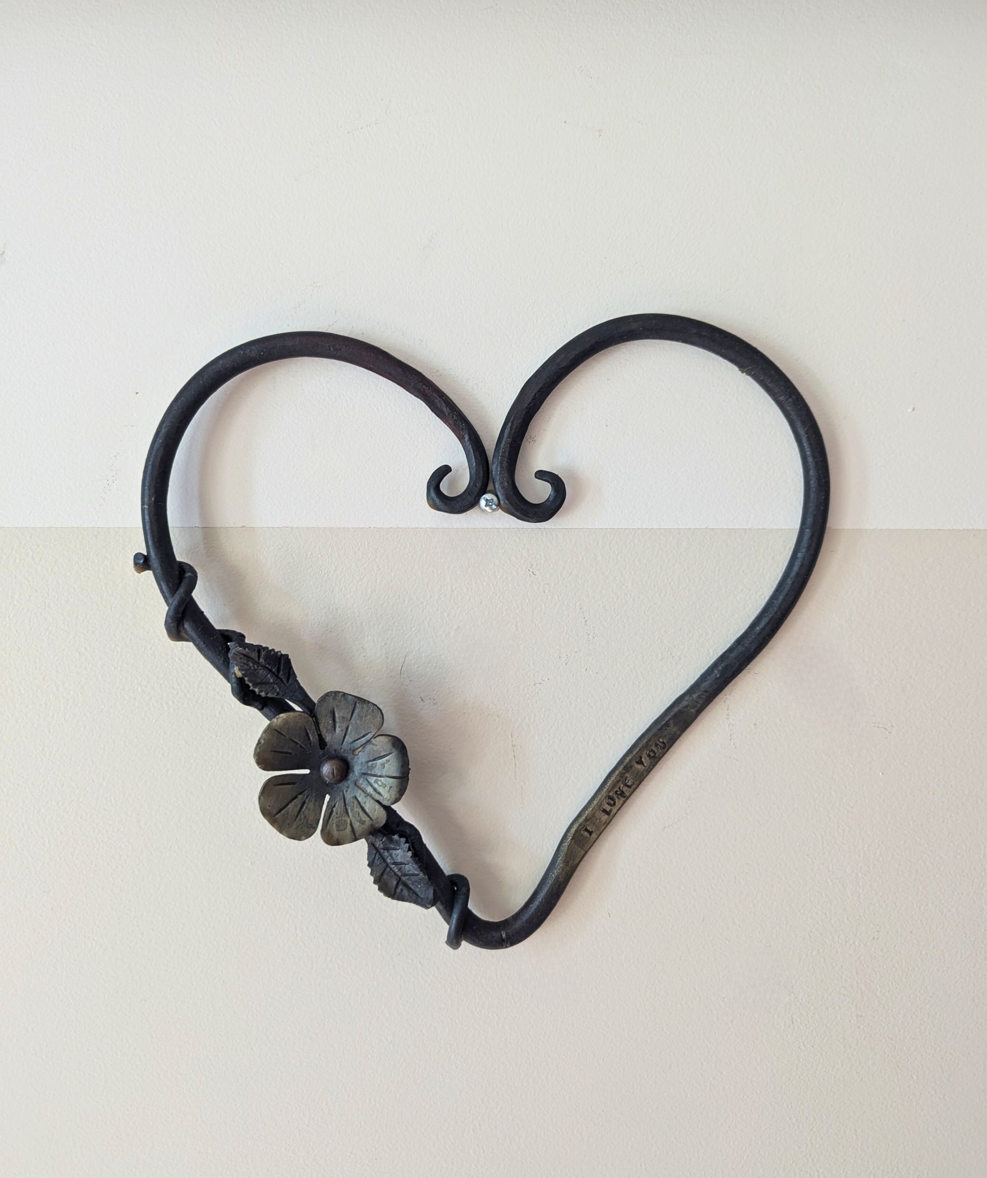Amish made Forged Steel Heart Decor w/ Flower & Leaf Accents - 'I Love You' Wall Hanging, Gift for Her, Valentine's Gift, Stand Alone Decor
