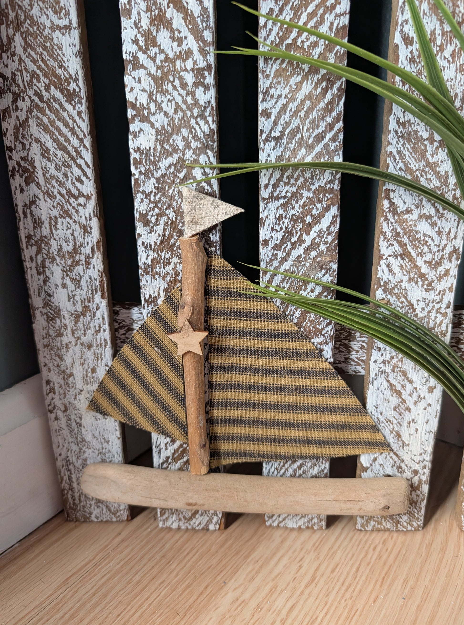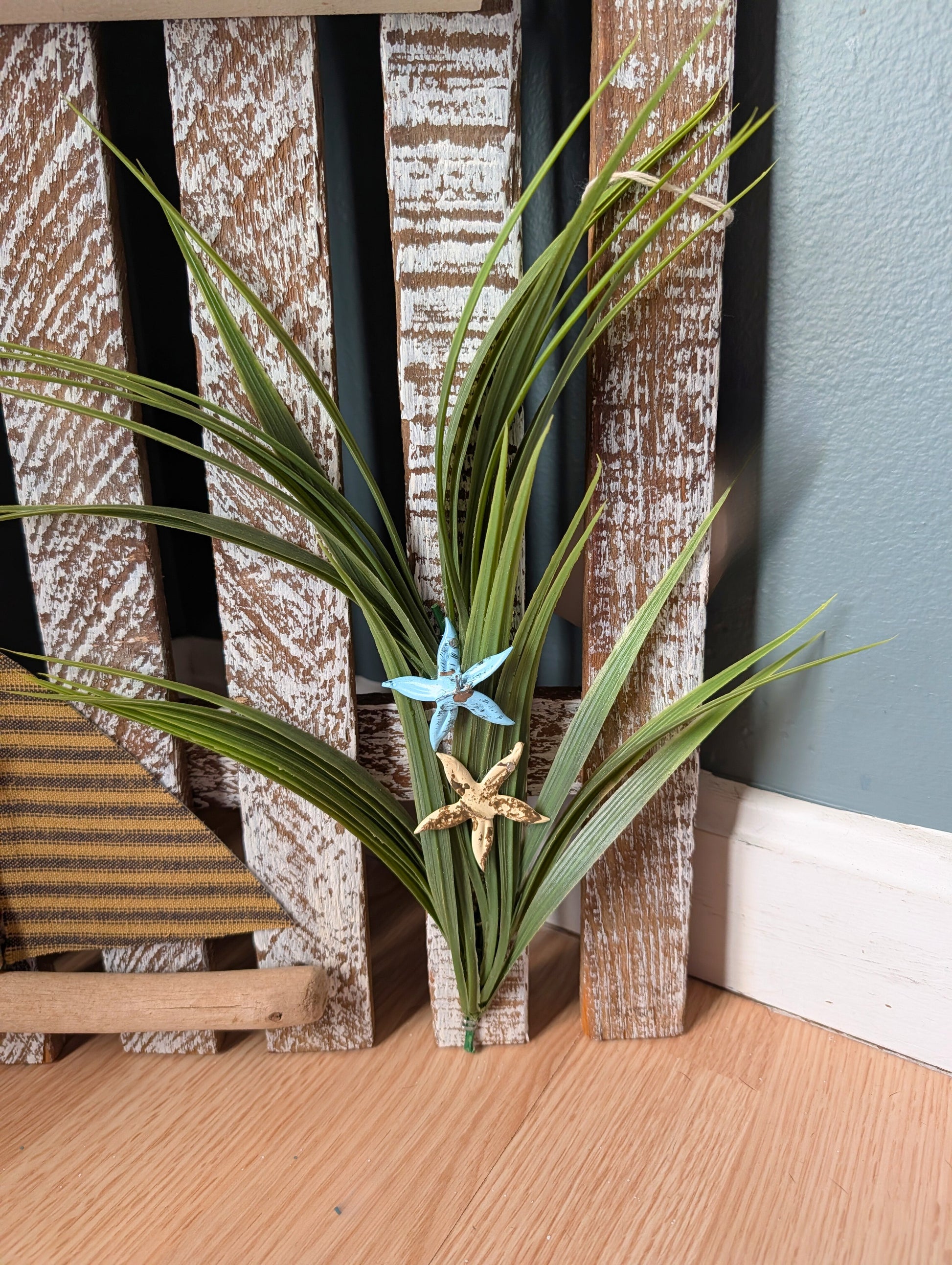 Designed to resemble a vintage picket fence, this piece features distressed wood, white lettering, and accents including anchors, greens, & boats. Available in White or Natural wood finish!