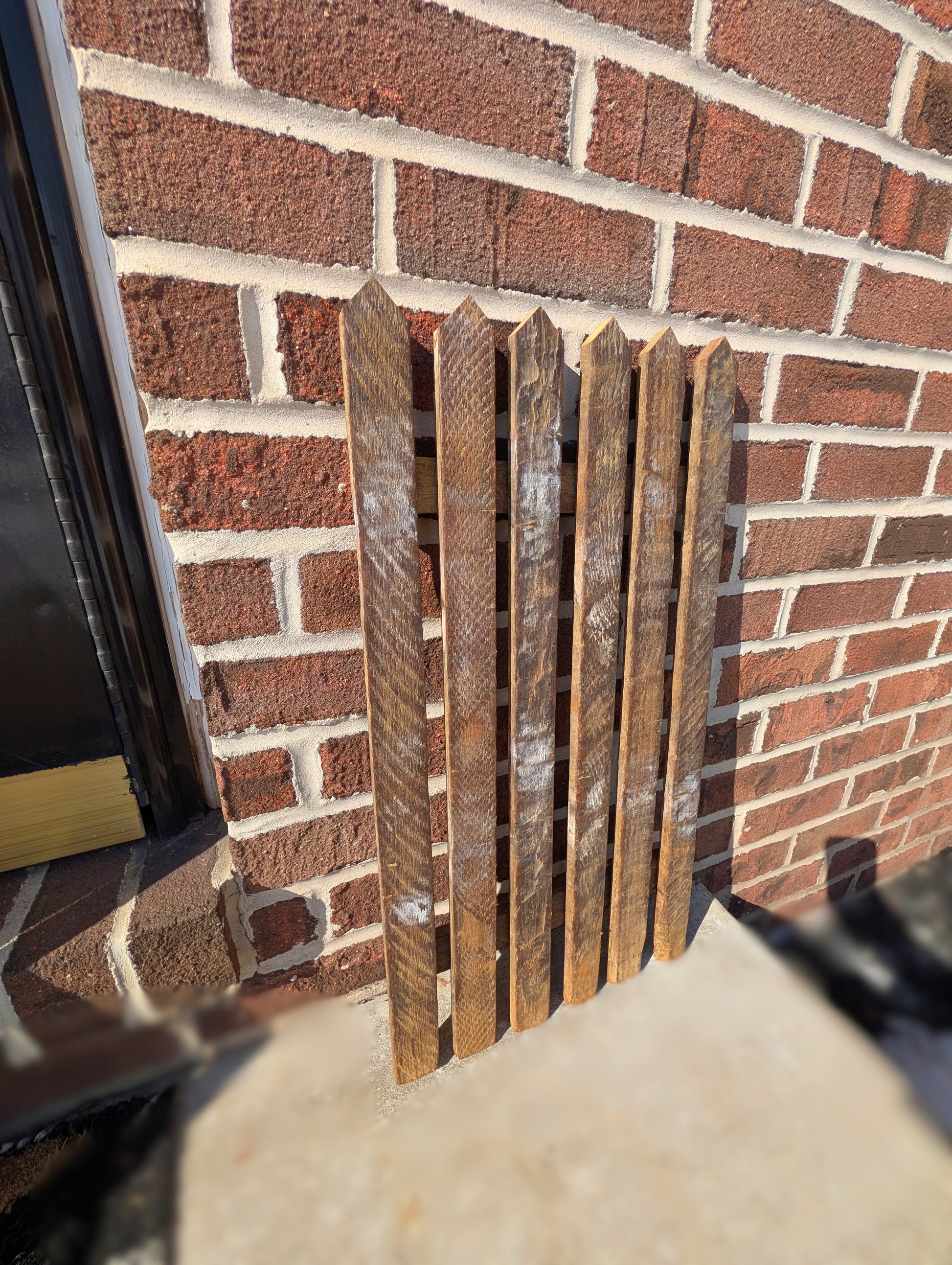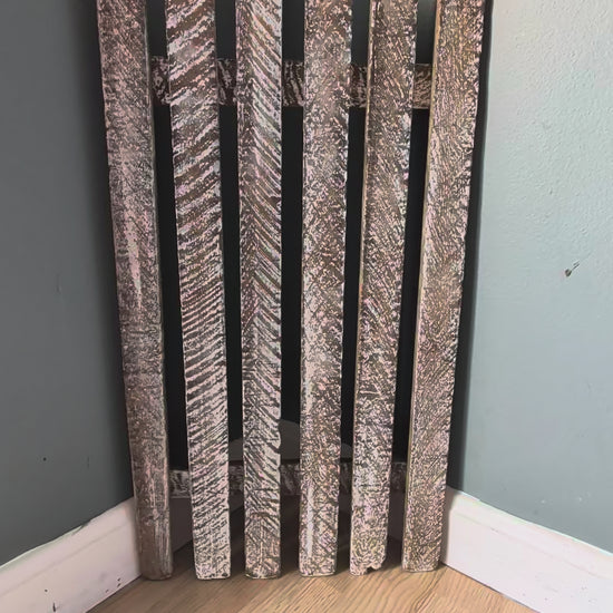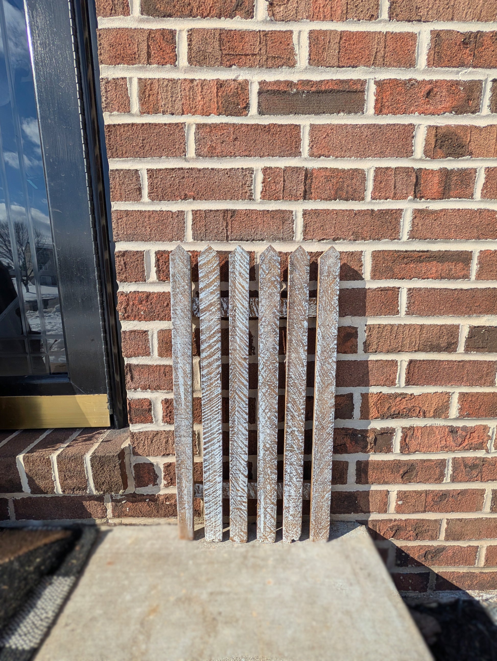Designed to resemble a vintage picket fence, this piece features distressed wood and rustic charm.