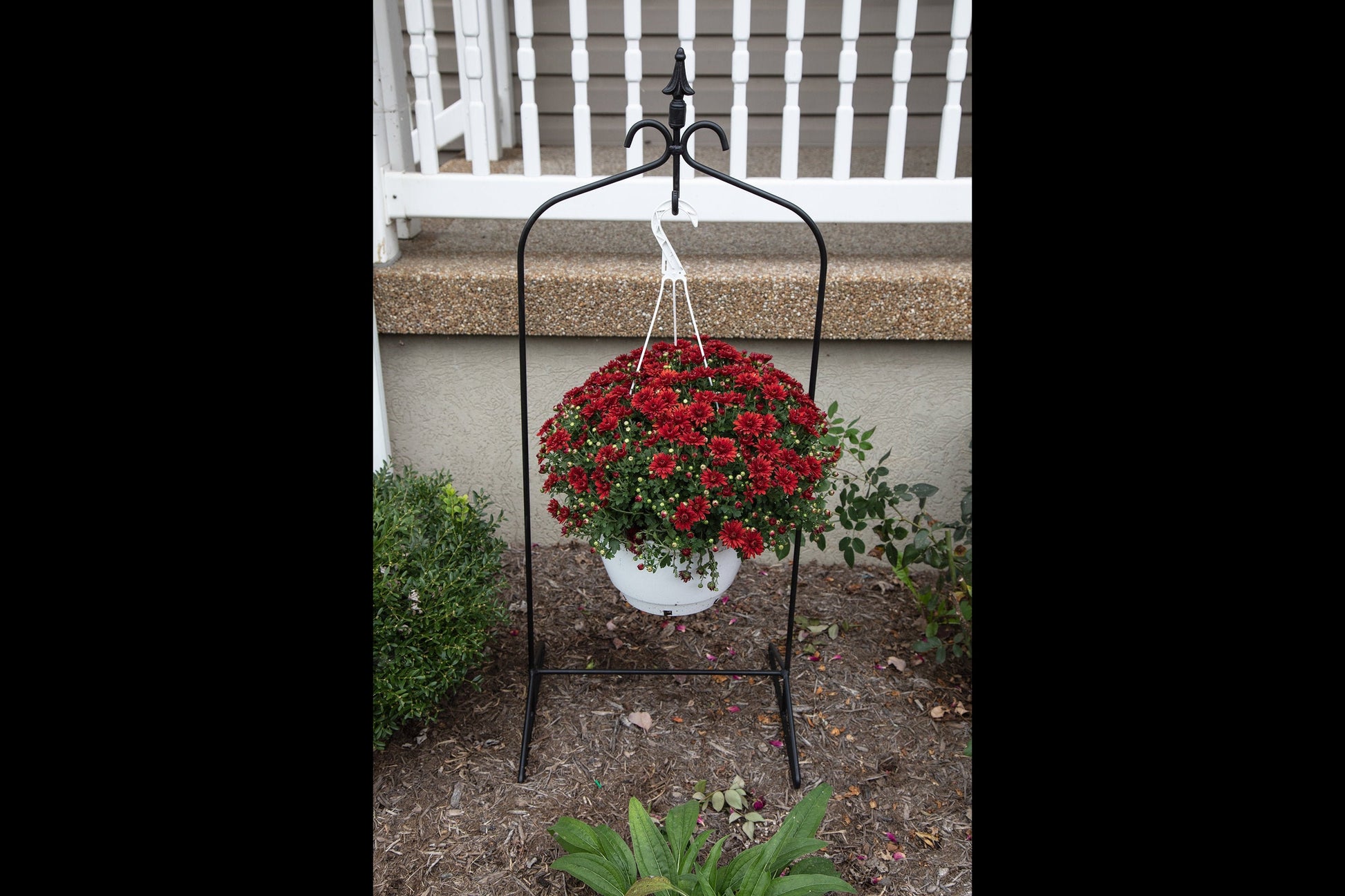 Transform your decks, porches, or patios with our strong and durable hanging flower pot holder. Crafted from high-quality wrought iron metal by skilled Pennsylvania Amish craftsmen, this pot holder is designed to support up to 40 lbs, ensuring it can hold your heaviest pots with ease.