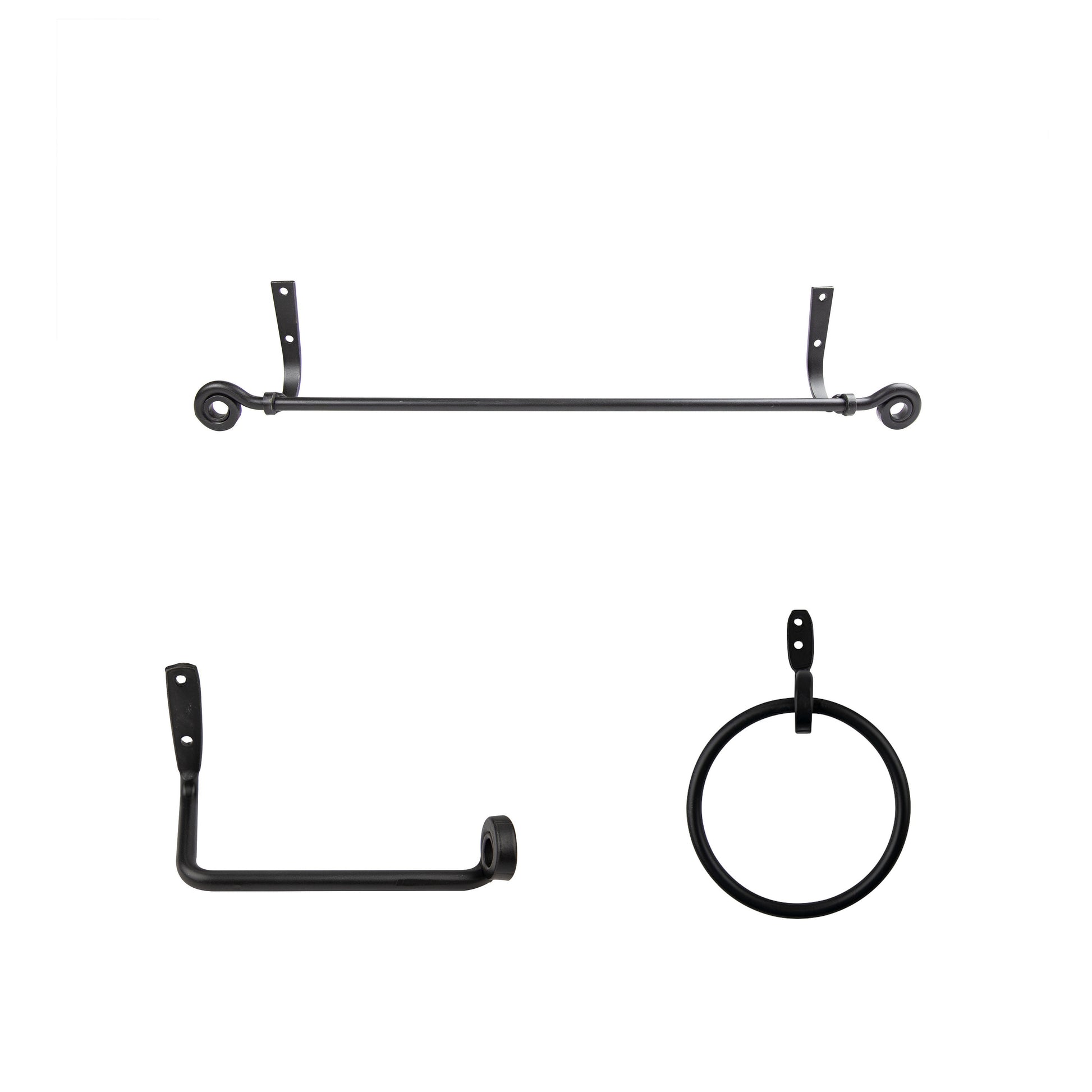 Farmhouse Style 3-Piece Wrought Iron Bathroom Hardware Set - Towel Bar, Towel Ring, Toilet Paper Holder