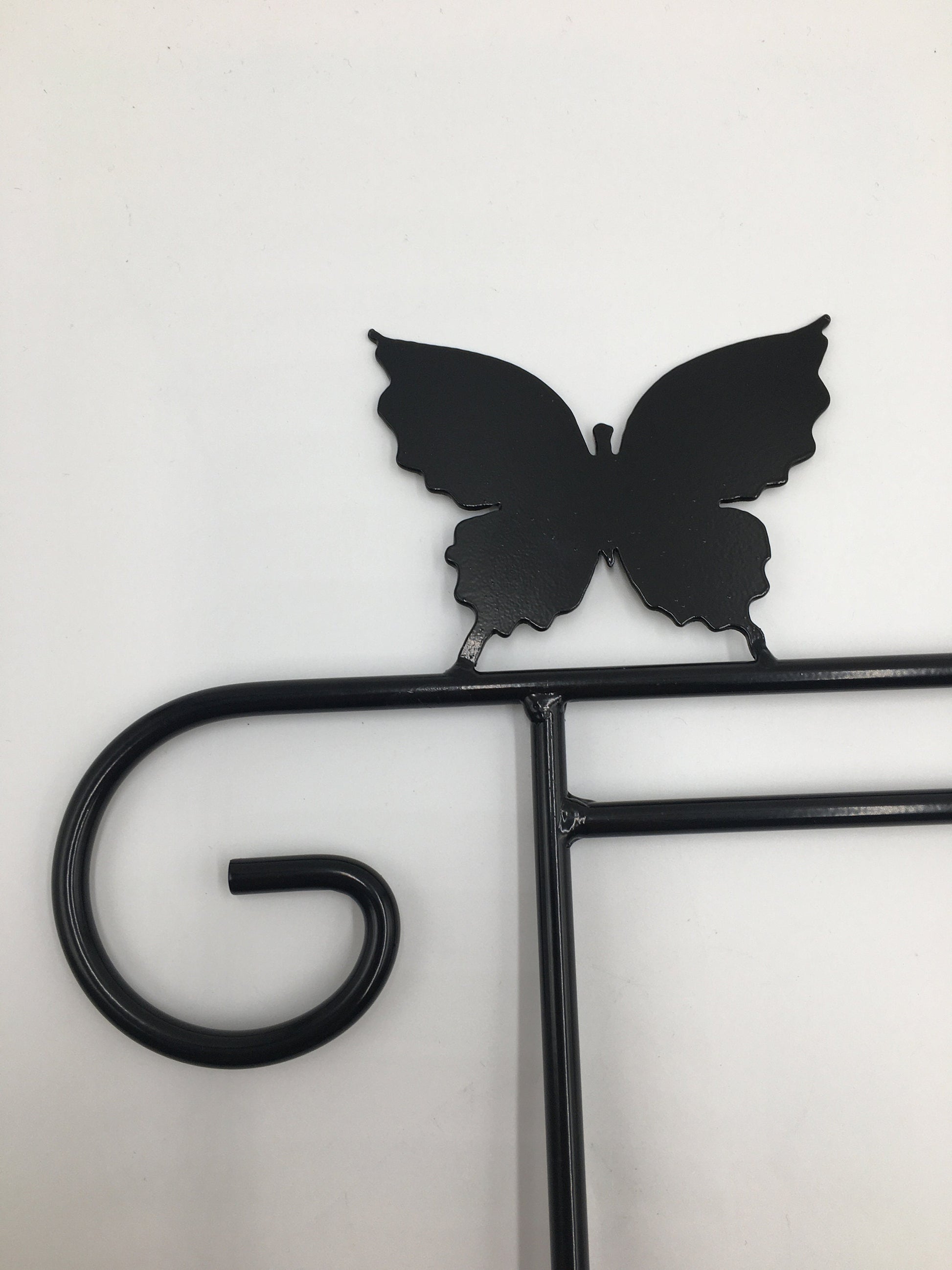 Black Heavy Duty Powder Coated Garden Flag Holder with a Butterfly on the top.