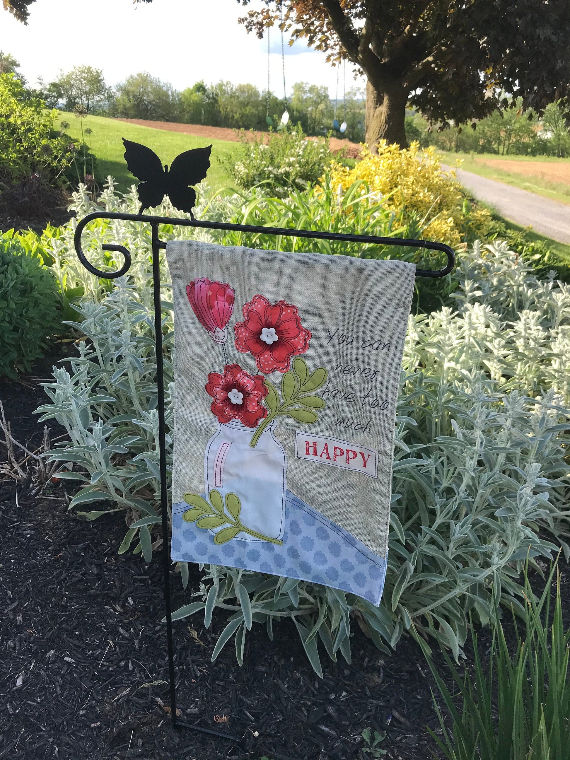 Black Butterfly Garden Flag Holder Stand - Heavy Duty Wrought Iron - Powder Coated - Amish Made