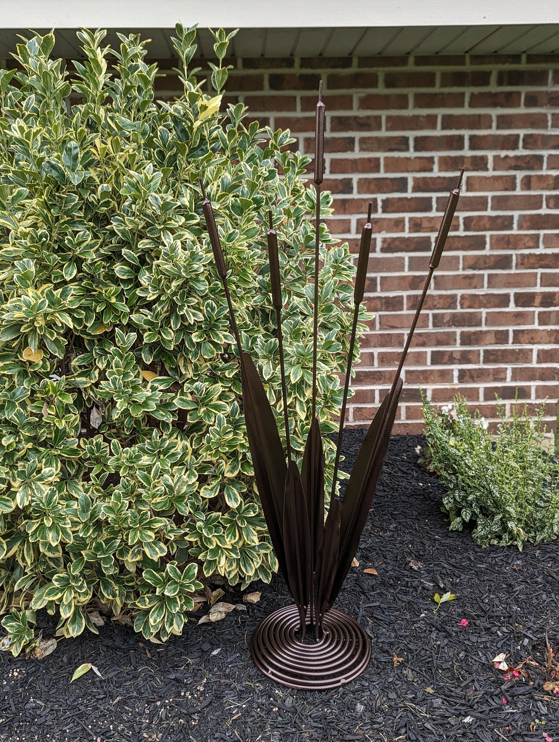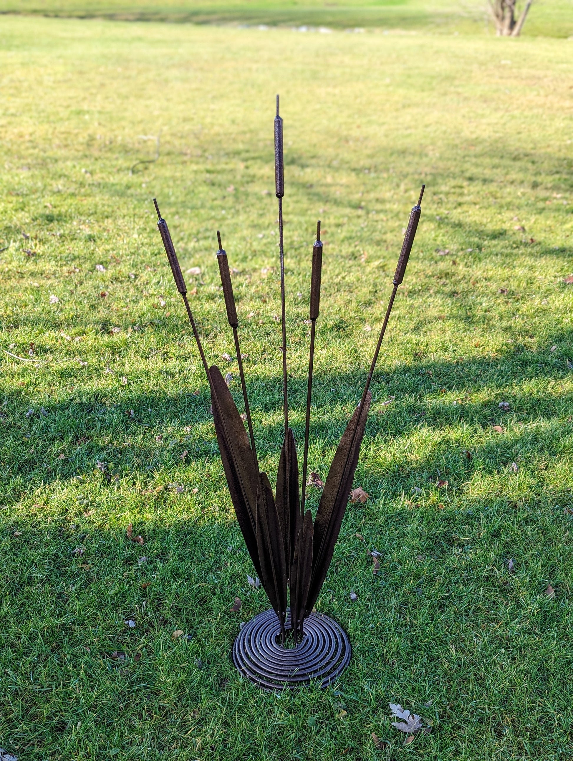Cattails Lawn Ornament - Flowerbed or Garden - Powder Coated Wrought Iron in Copper tones - Amish Made
