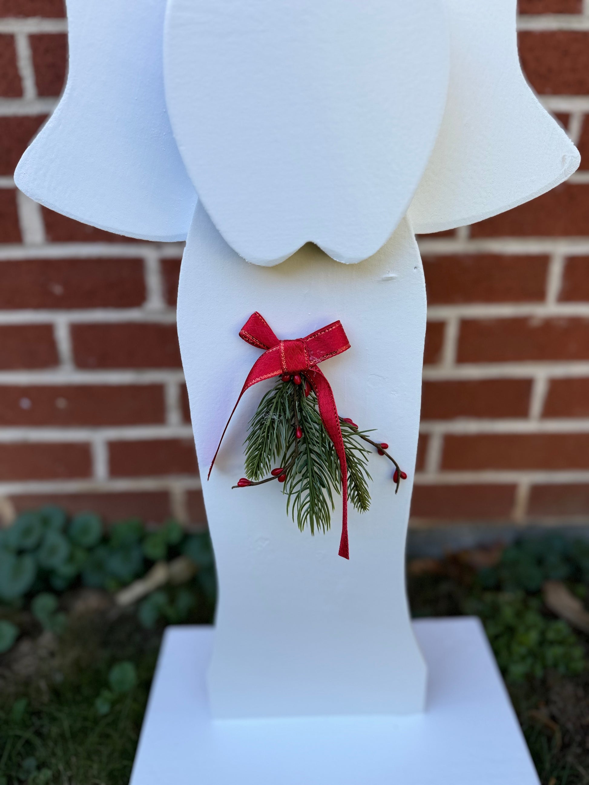 Enhance your holiday decor with our handcrafted Amish Wooden Angel, featuring a festive red bow and charming greenery accents. This elegant angel stand is a perfect Christmas decoration, bringing warmth and tradition to any space. With its graceful angel wings, it makes a beautiful addition to your winter decor or a thoughtful holiday gift.