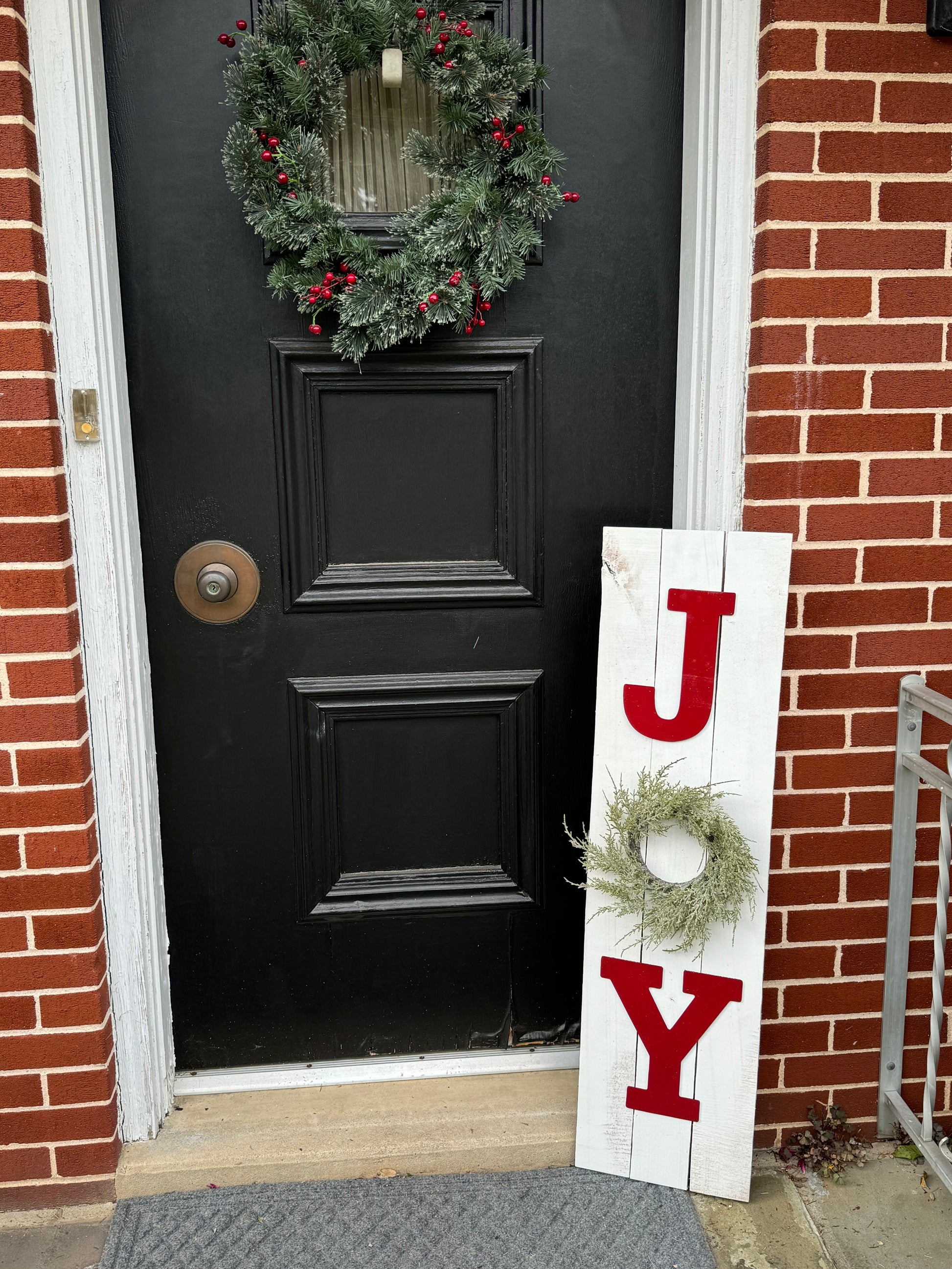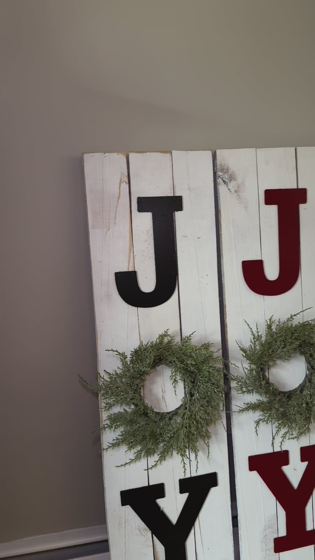 Enhance your holiday decor with our handcrafted Amish Wooden JOY Sign, available in classic black and red. This beautiful piece features a festive green wreath, making it the perfect Christmas decoration for your home. It brings warmth and tradition, adding charm to your Christmas display or acting as a welcoming winter decor accent.