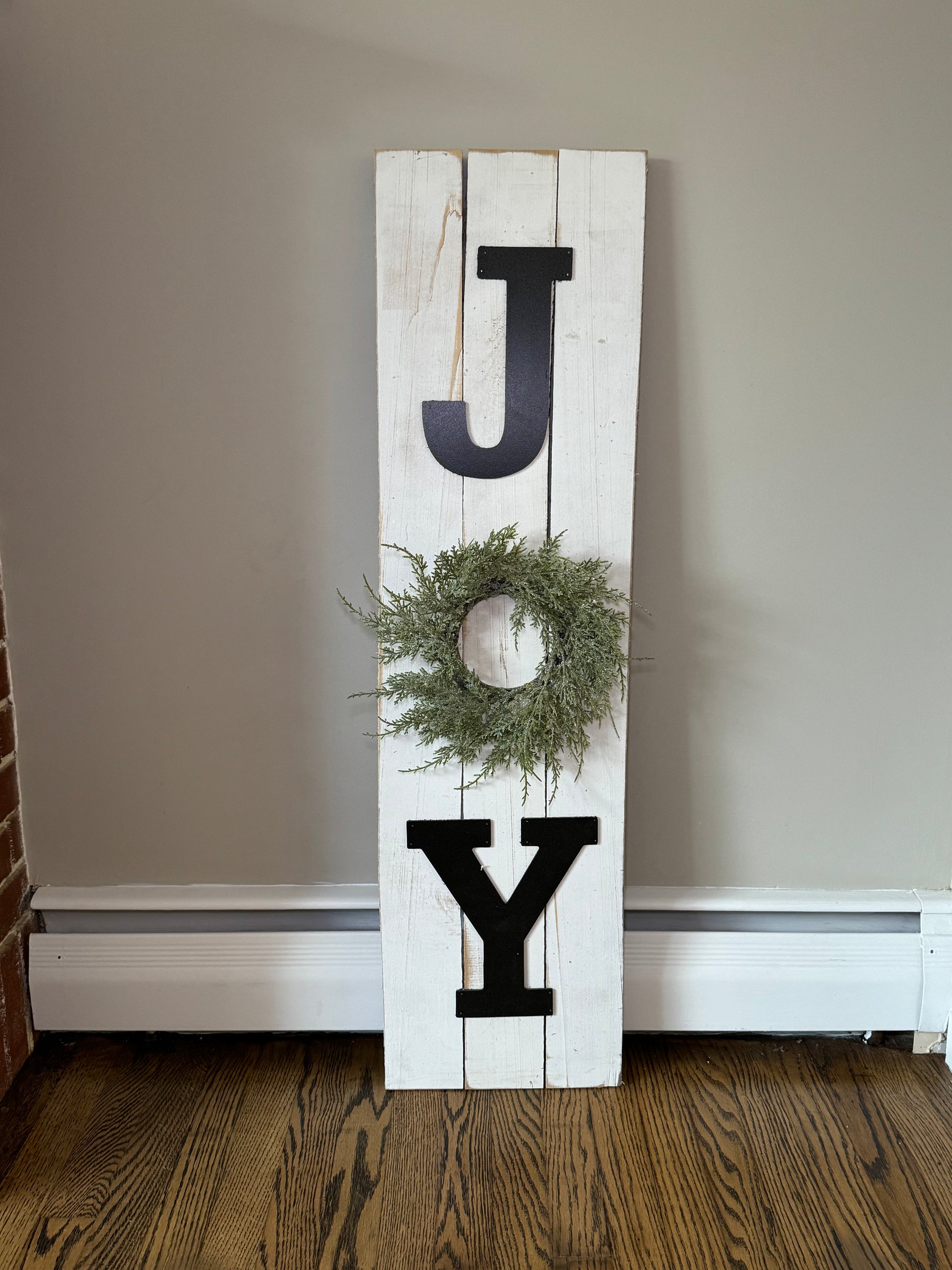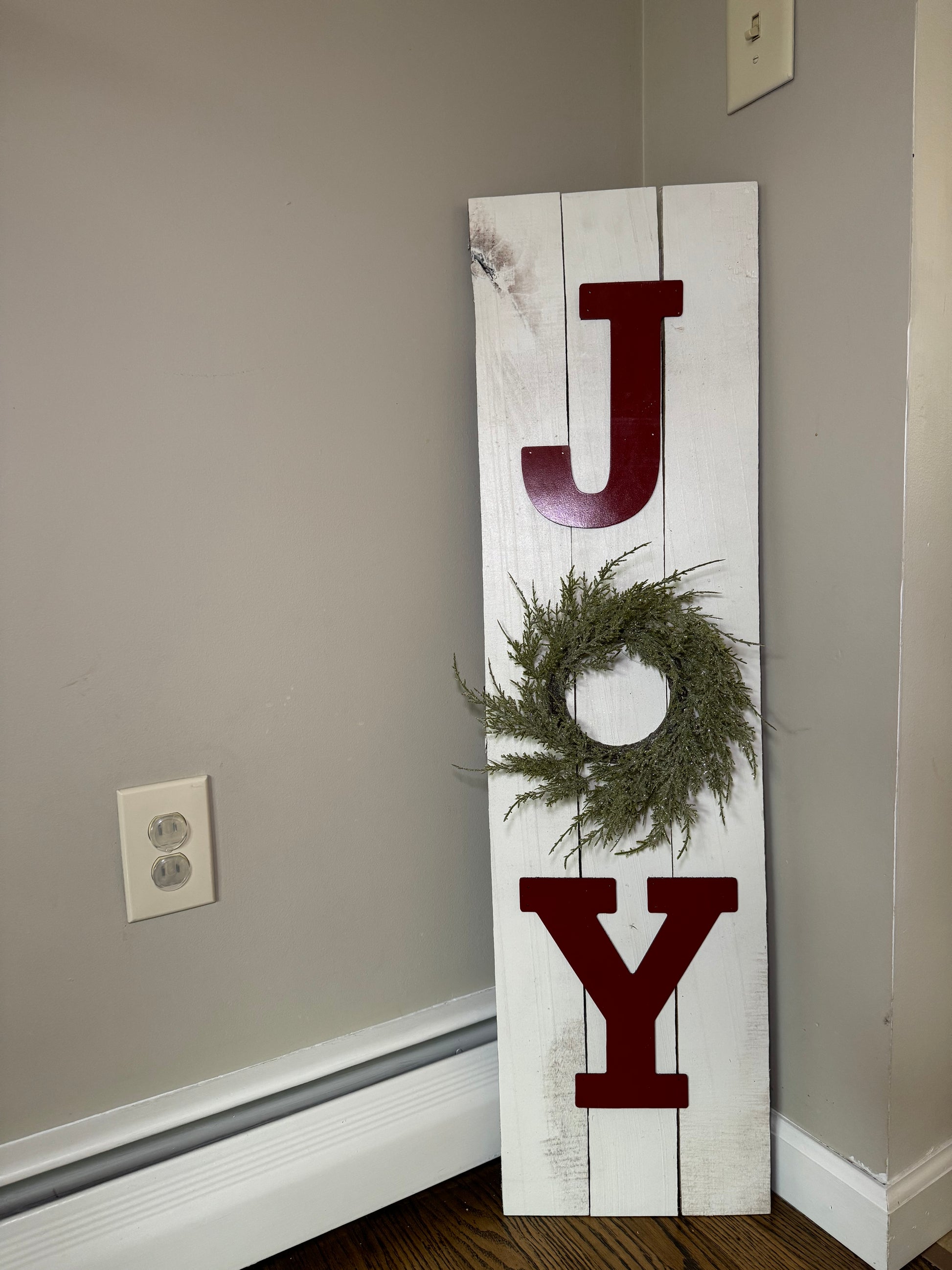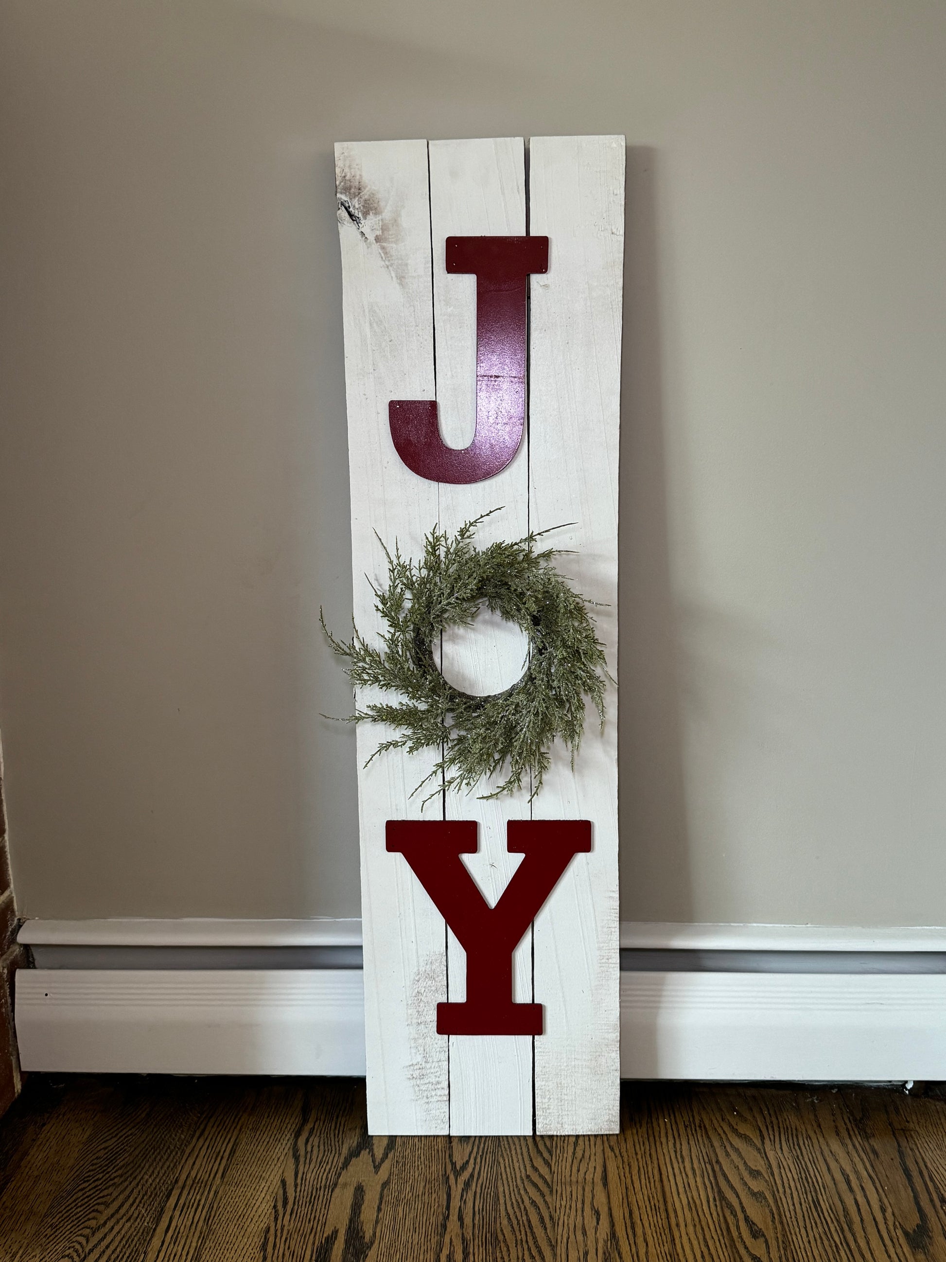 Christmas JOY Sign with Wreath–Barn Wood Holiday Art, Christian Art, Winter Decor, Christmas Decoration, Indoor-Outdoor Decor, Gifts for Her