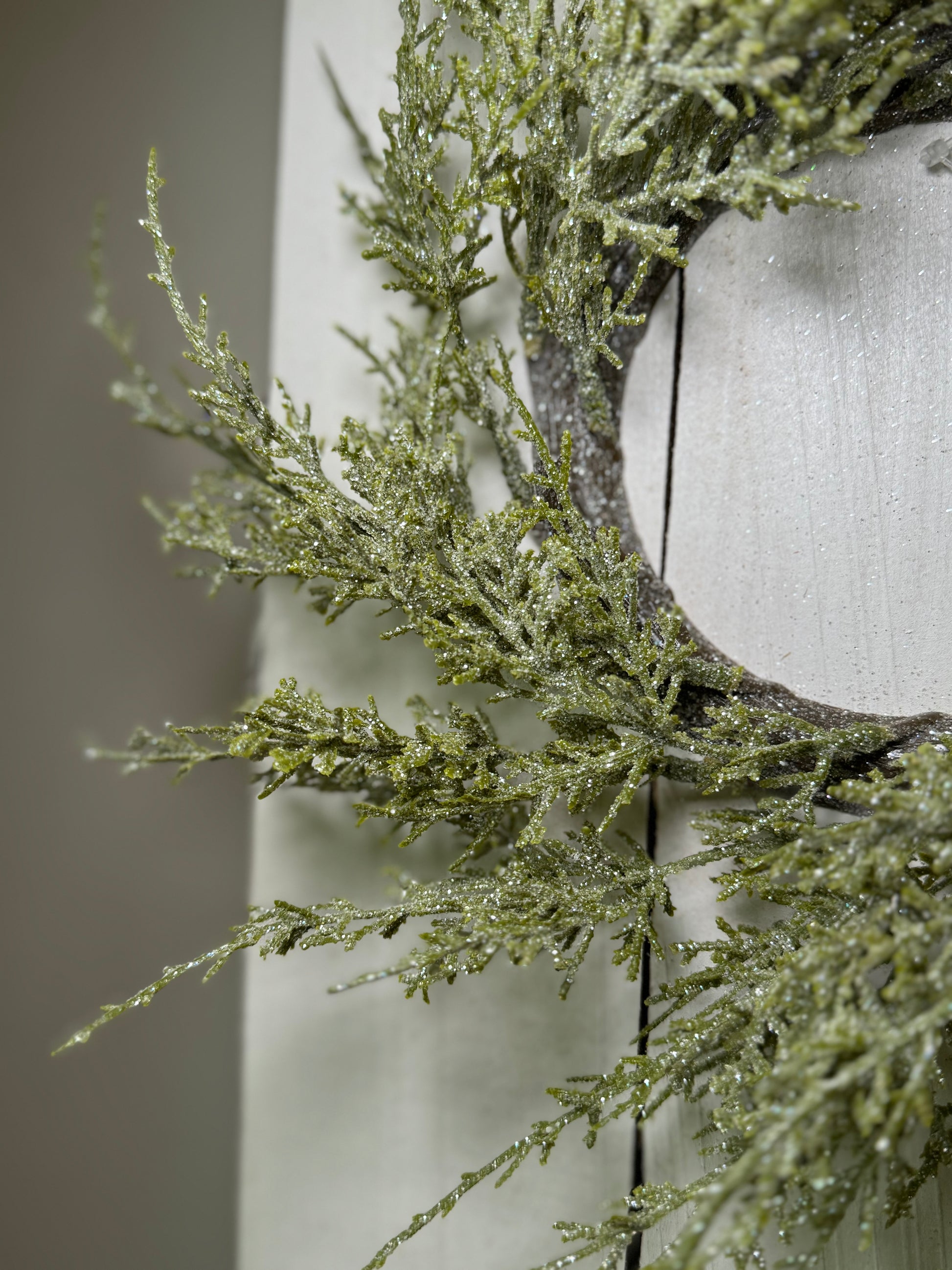 Made from durable barn wood, metal letters, and an artificial green wreath, this sign is built to last.