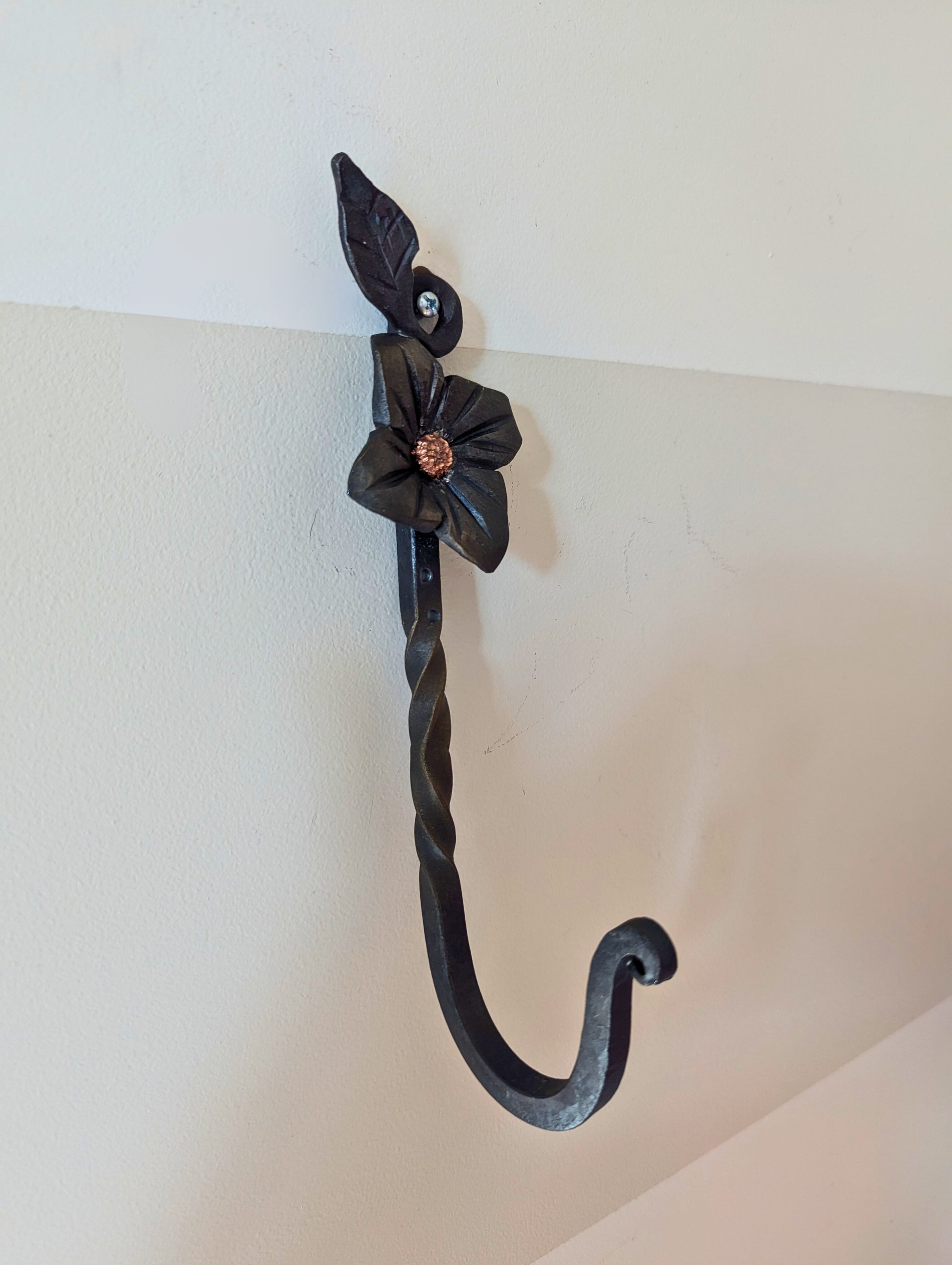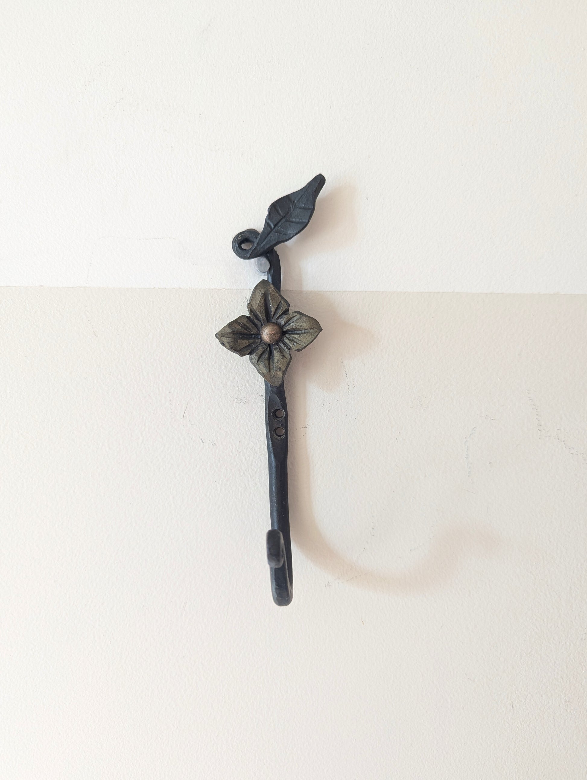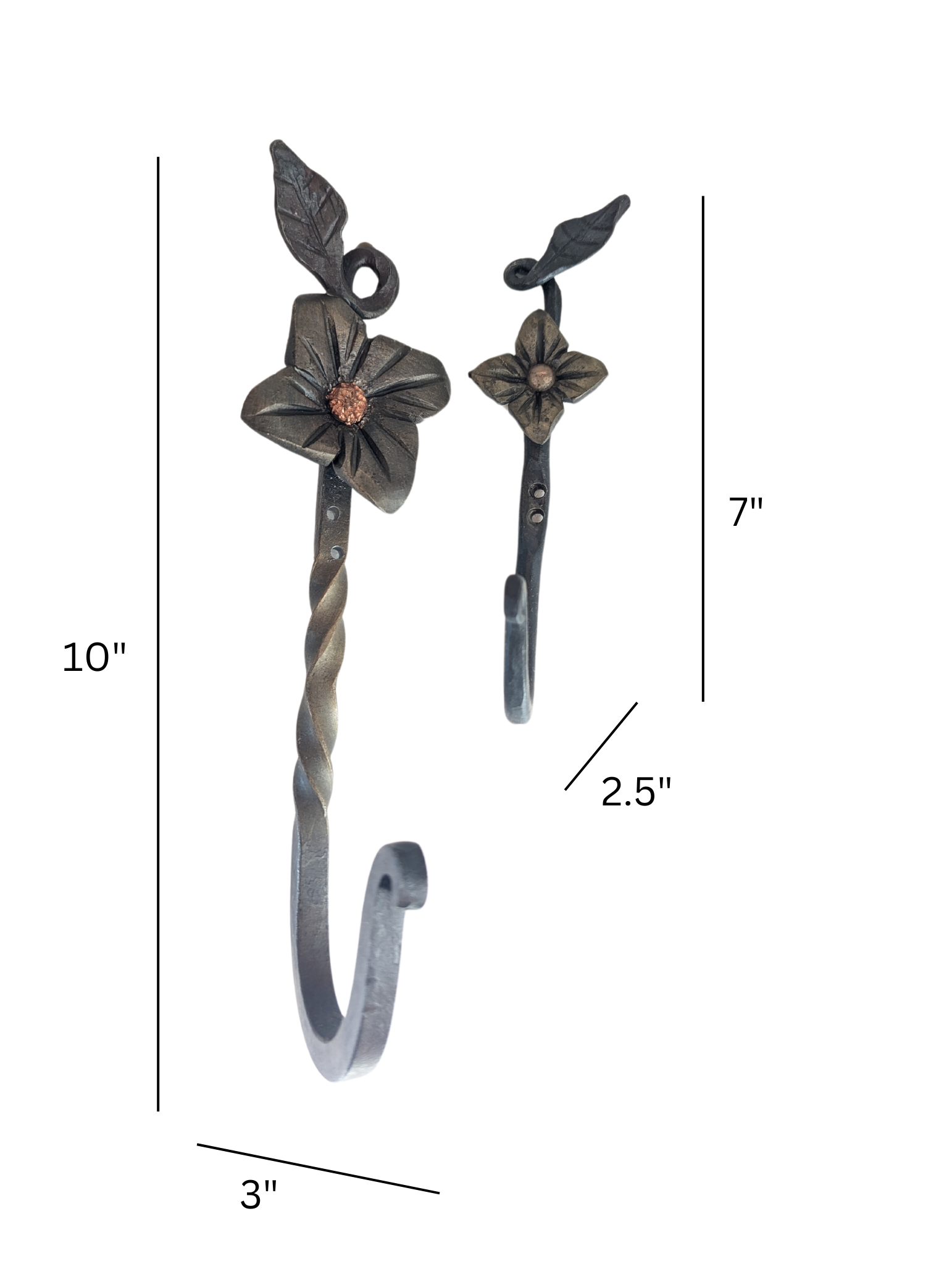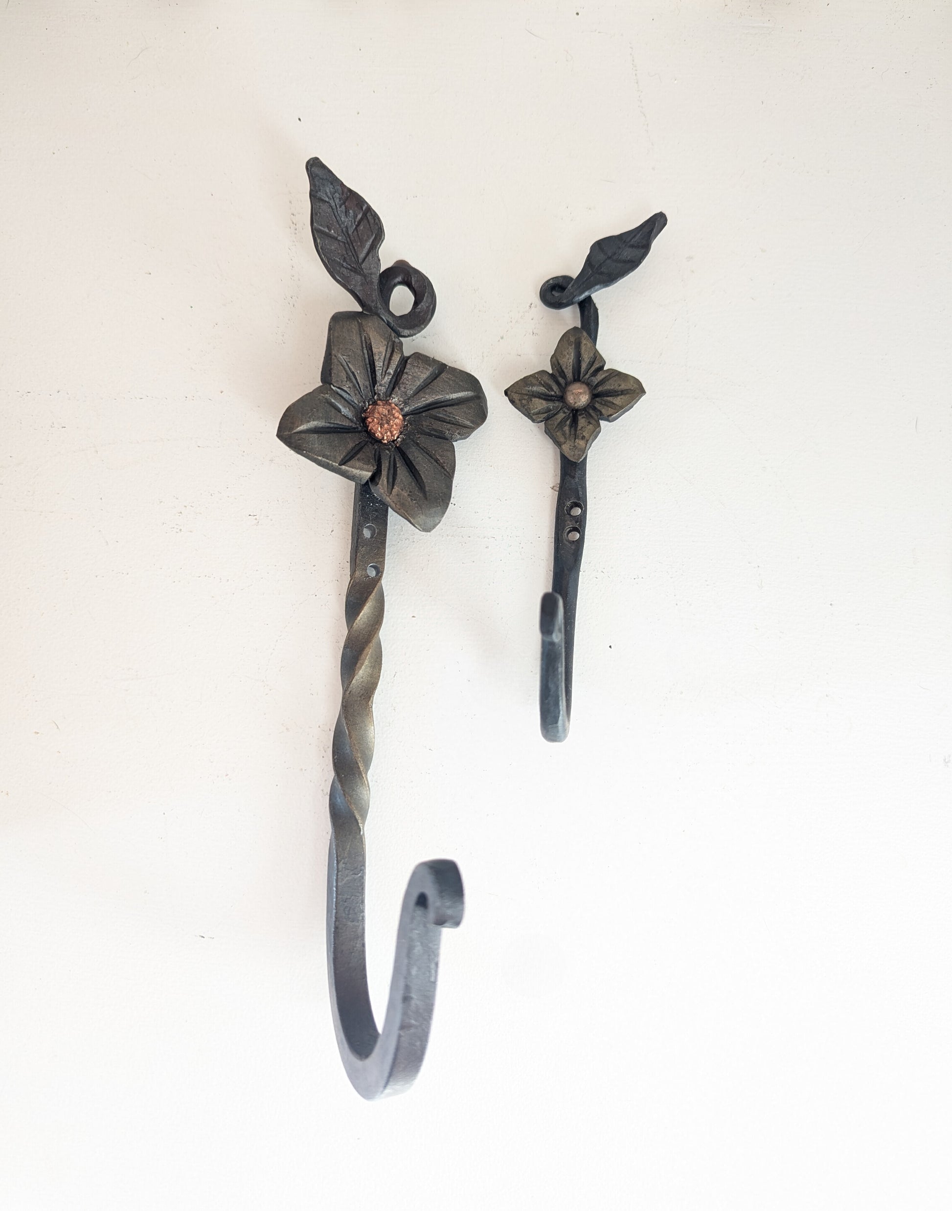 Handmade Forged Steel Hooks with Flower and Leaf Design.