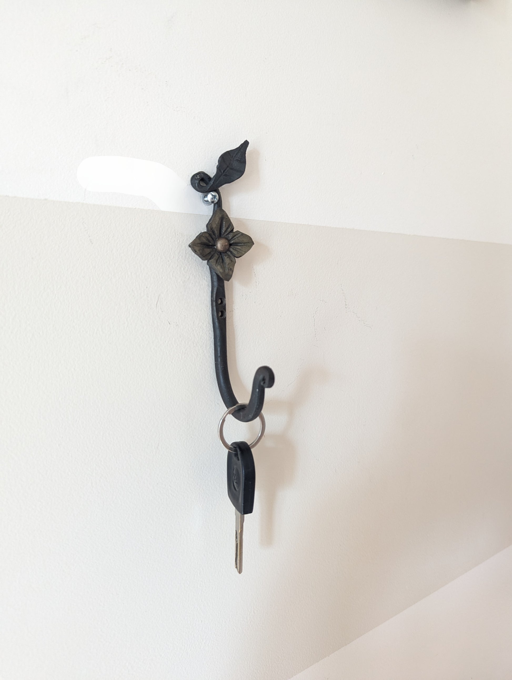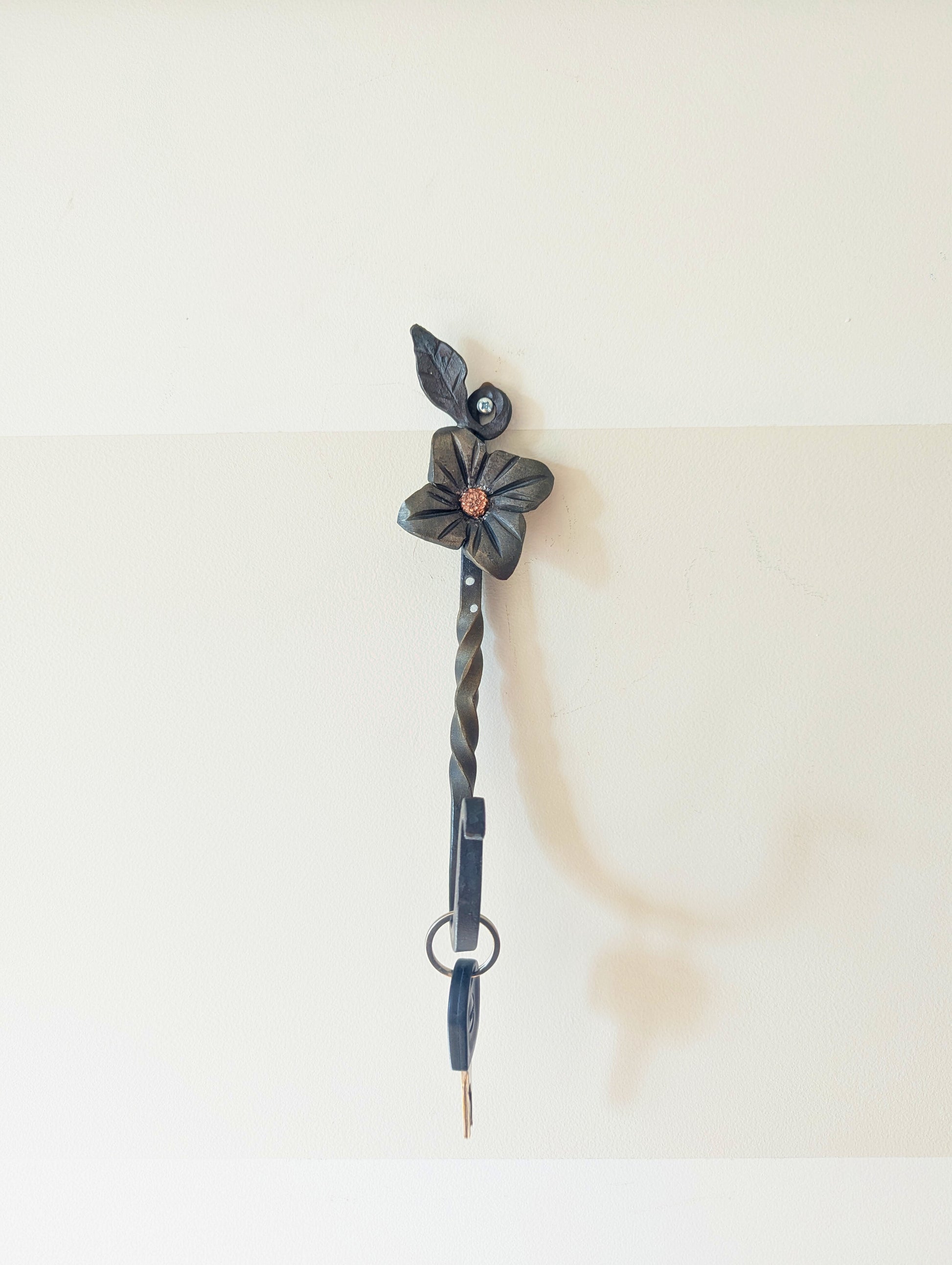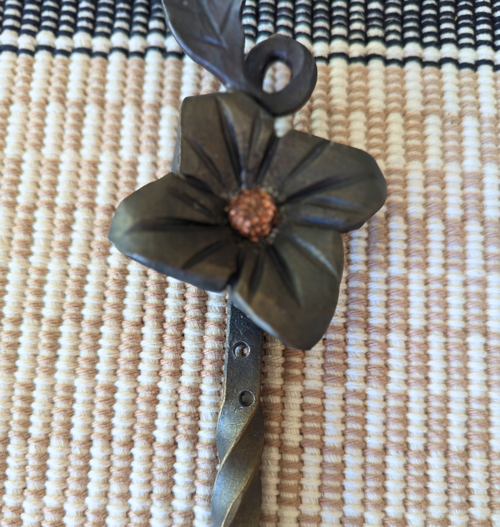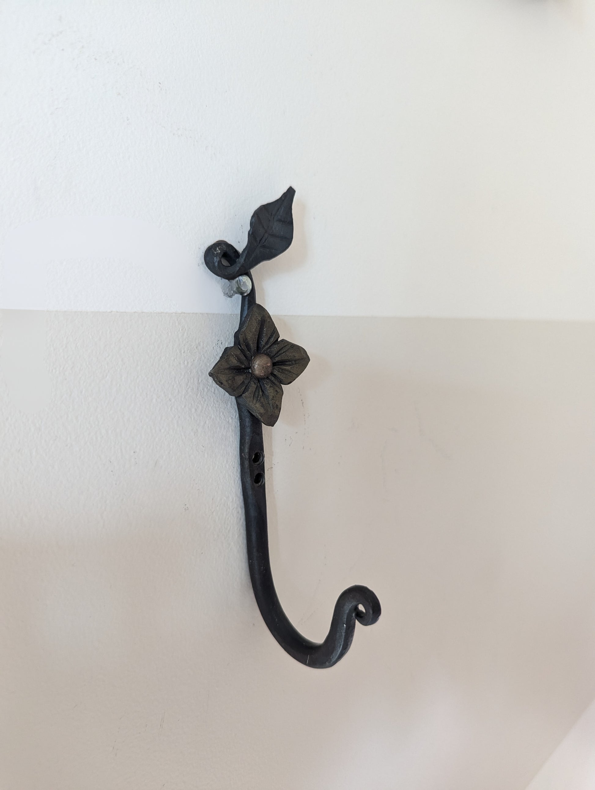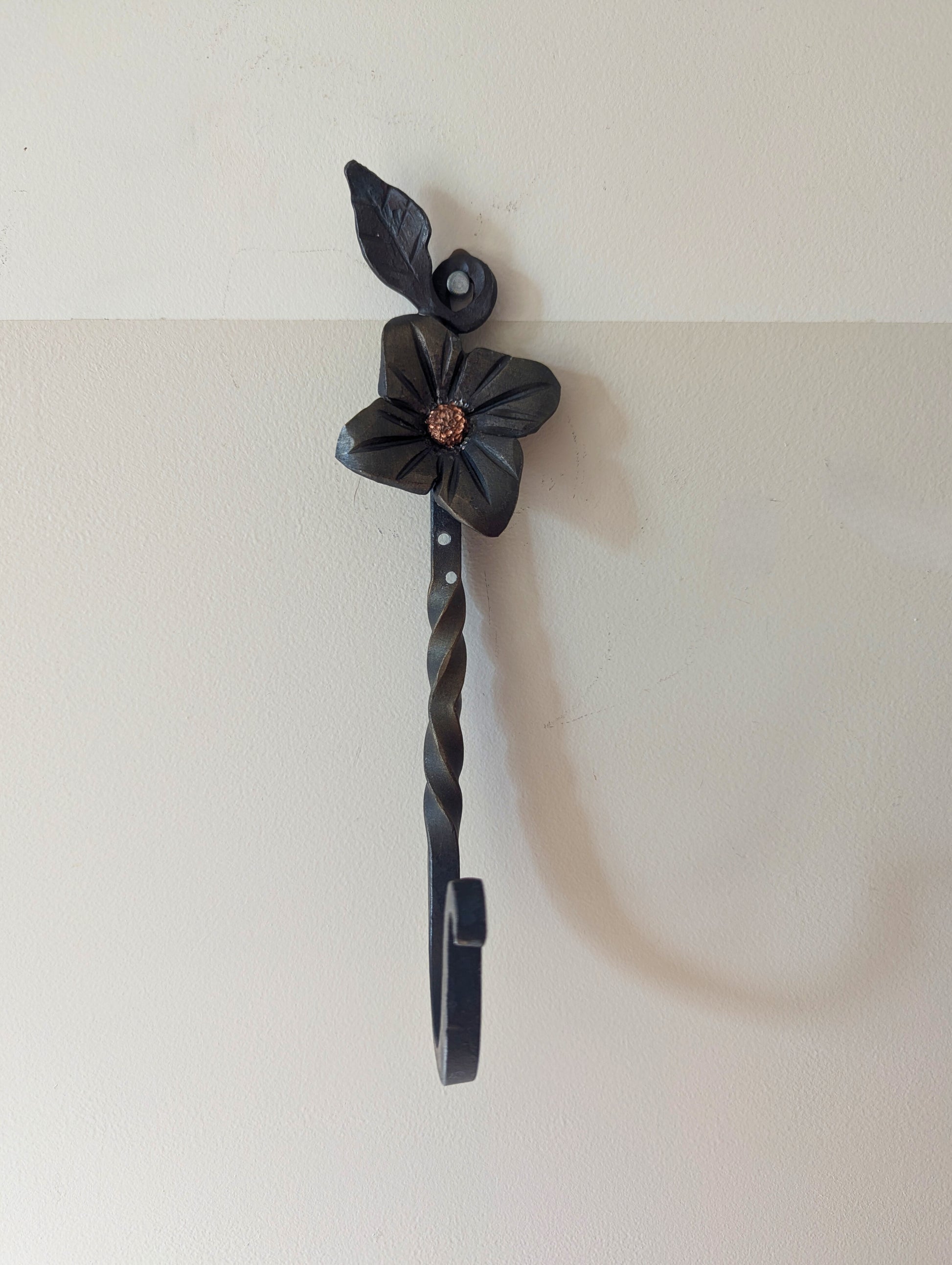 Handmade Forged Steel Hooks with Flower and Leaf Design.