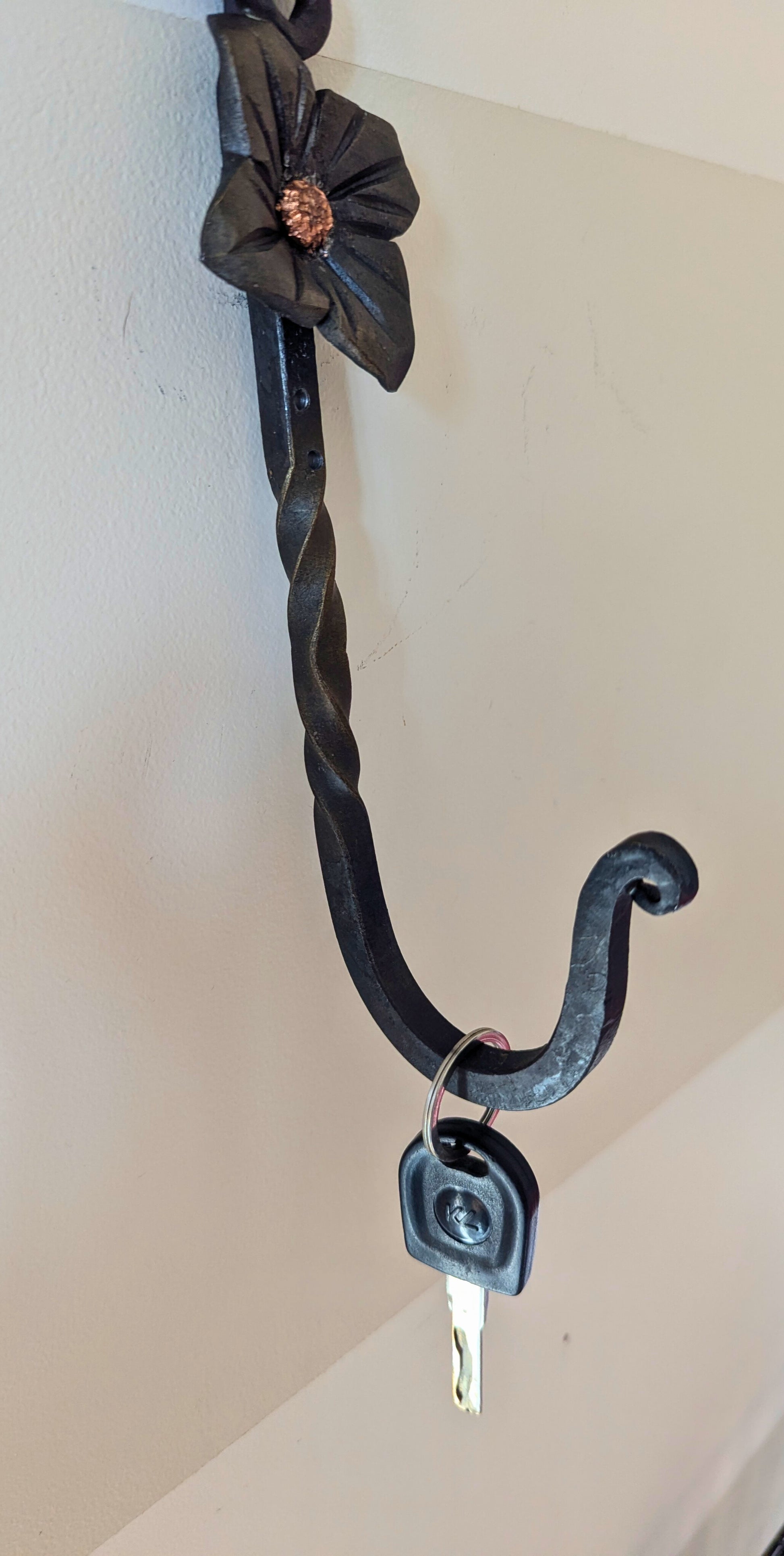 Forged Steel Key/Towel Hook- Small/Large Flower Leaf Design, Handmade w/ Twisted Accent- Blacksmith Created Kitchen, Entryway, Bathroom Dec.