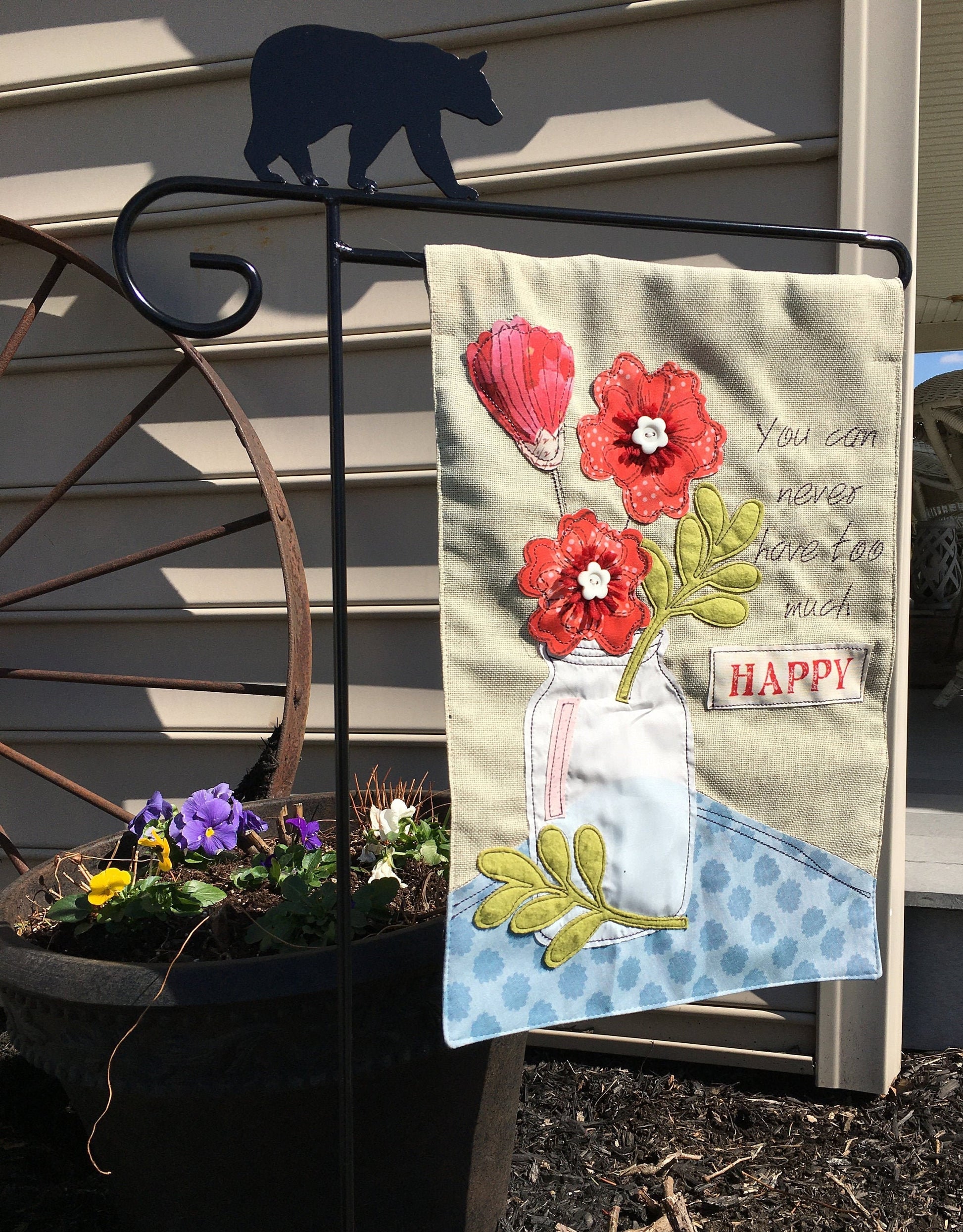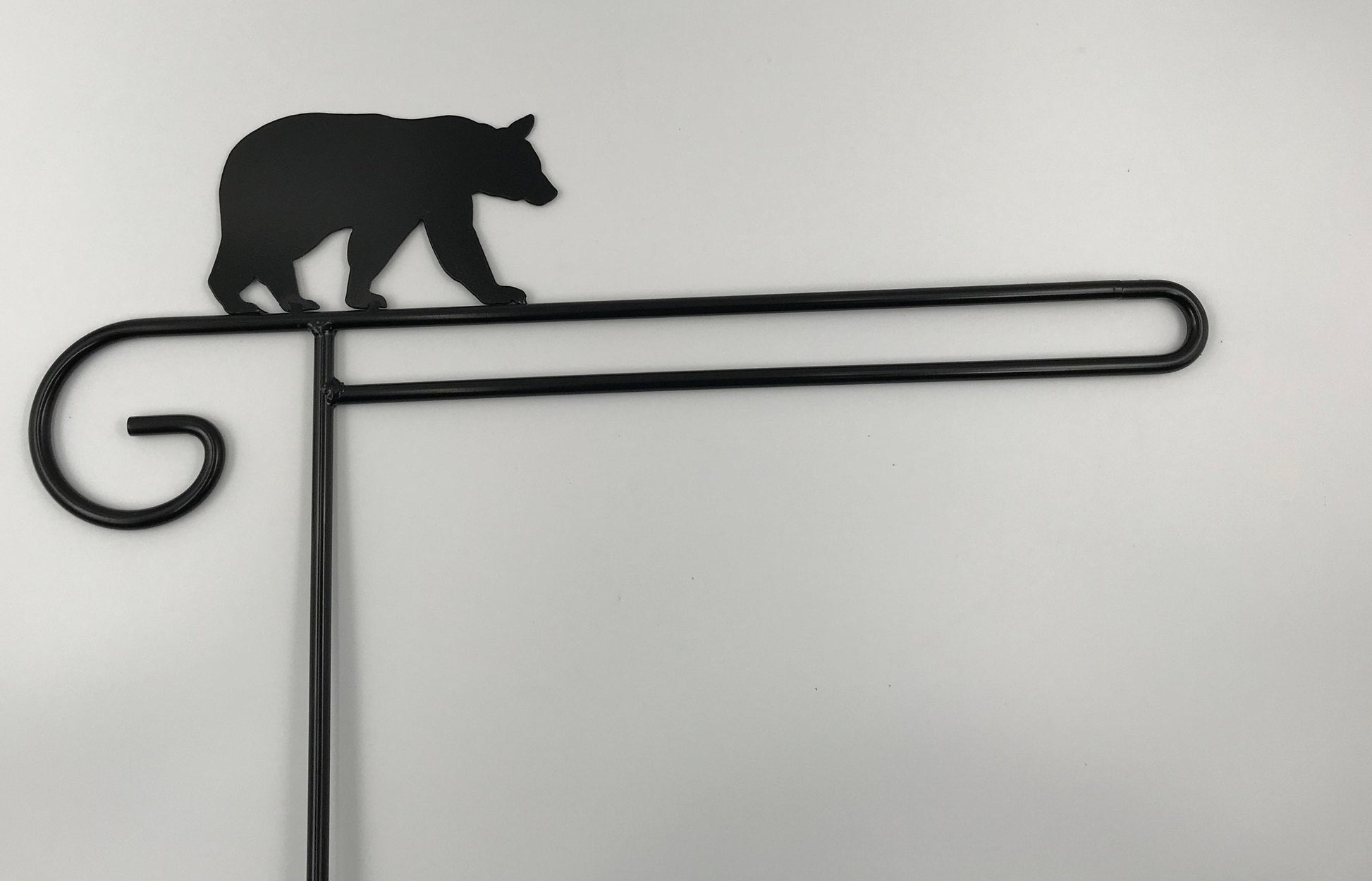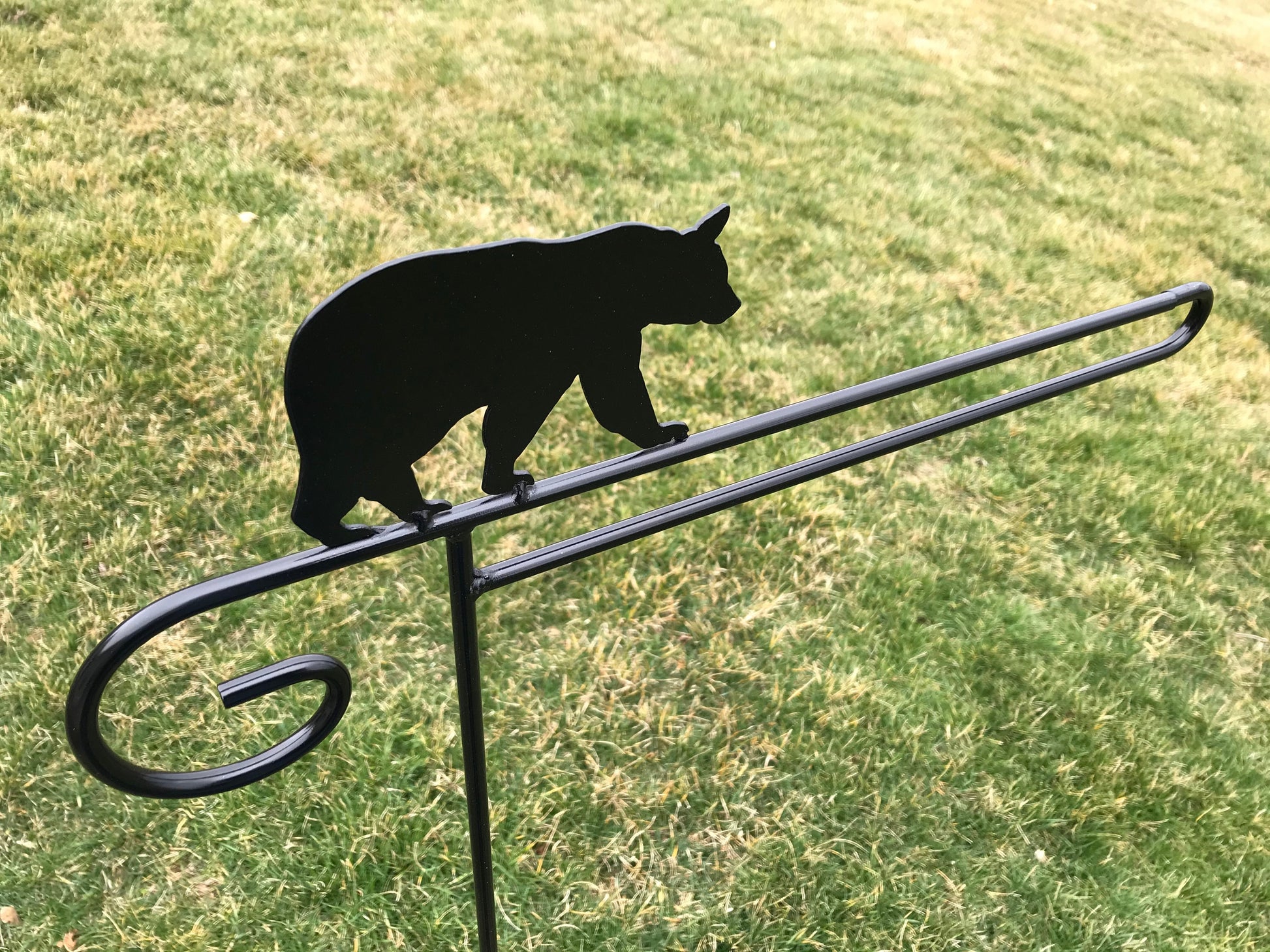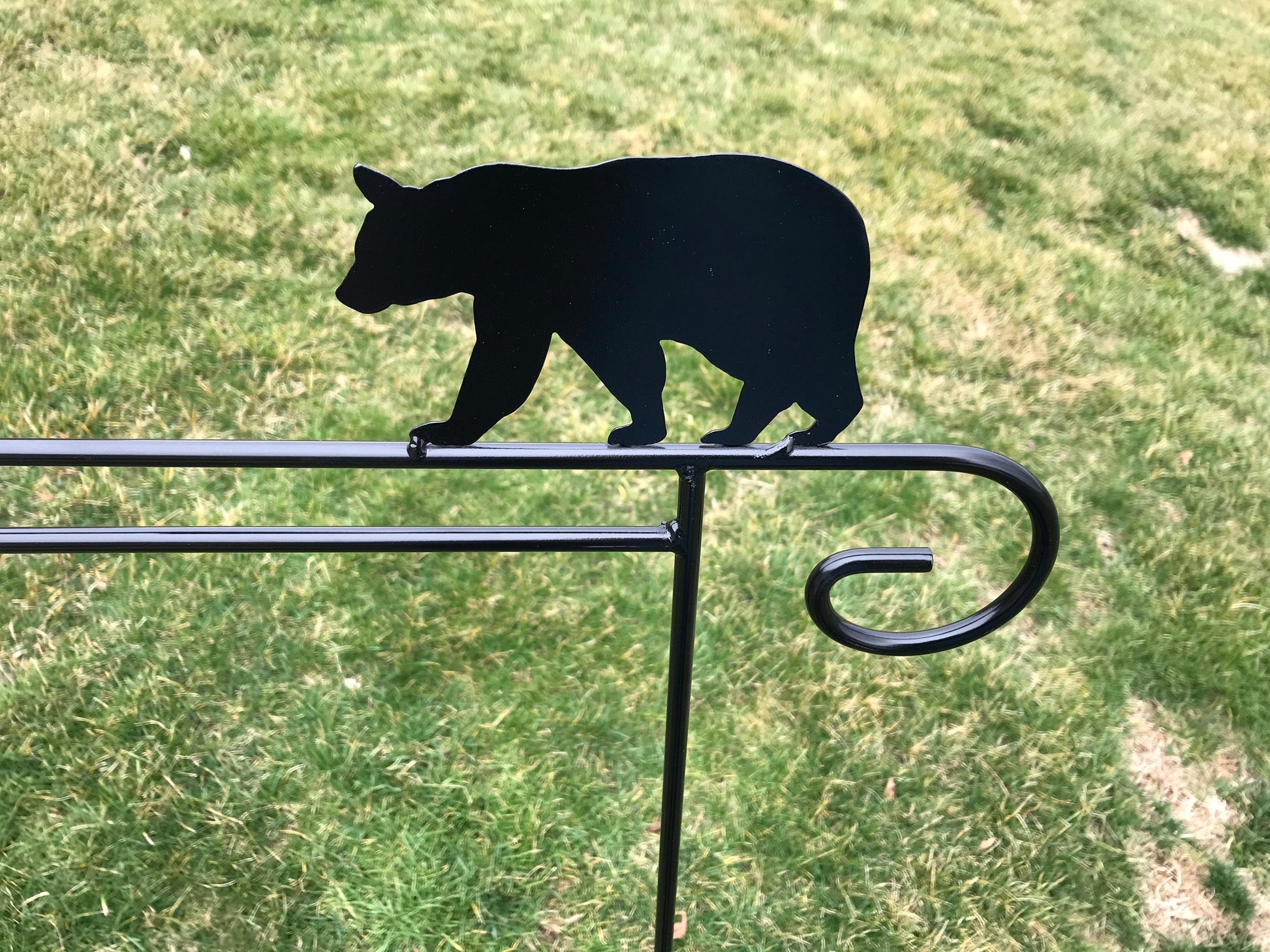Black Heavy Duty Powder Coated Garden Flag Holder with a bear on the top.
