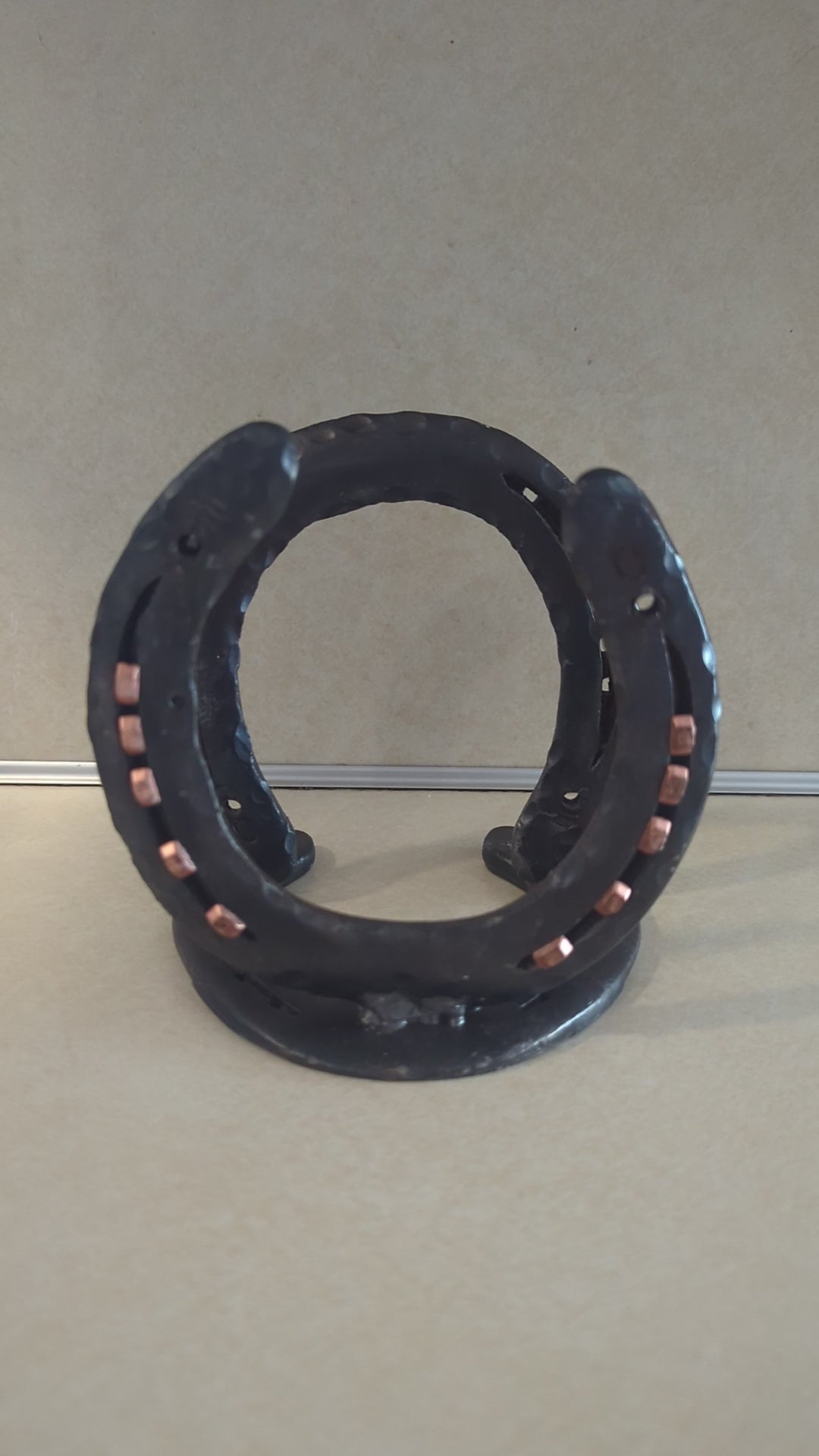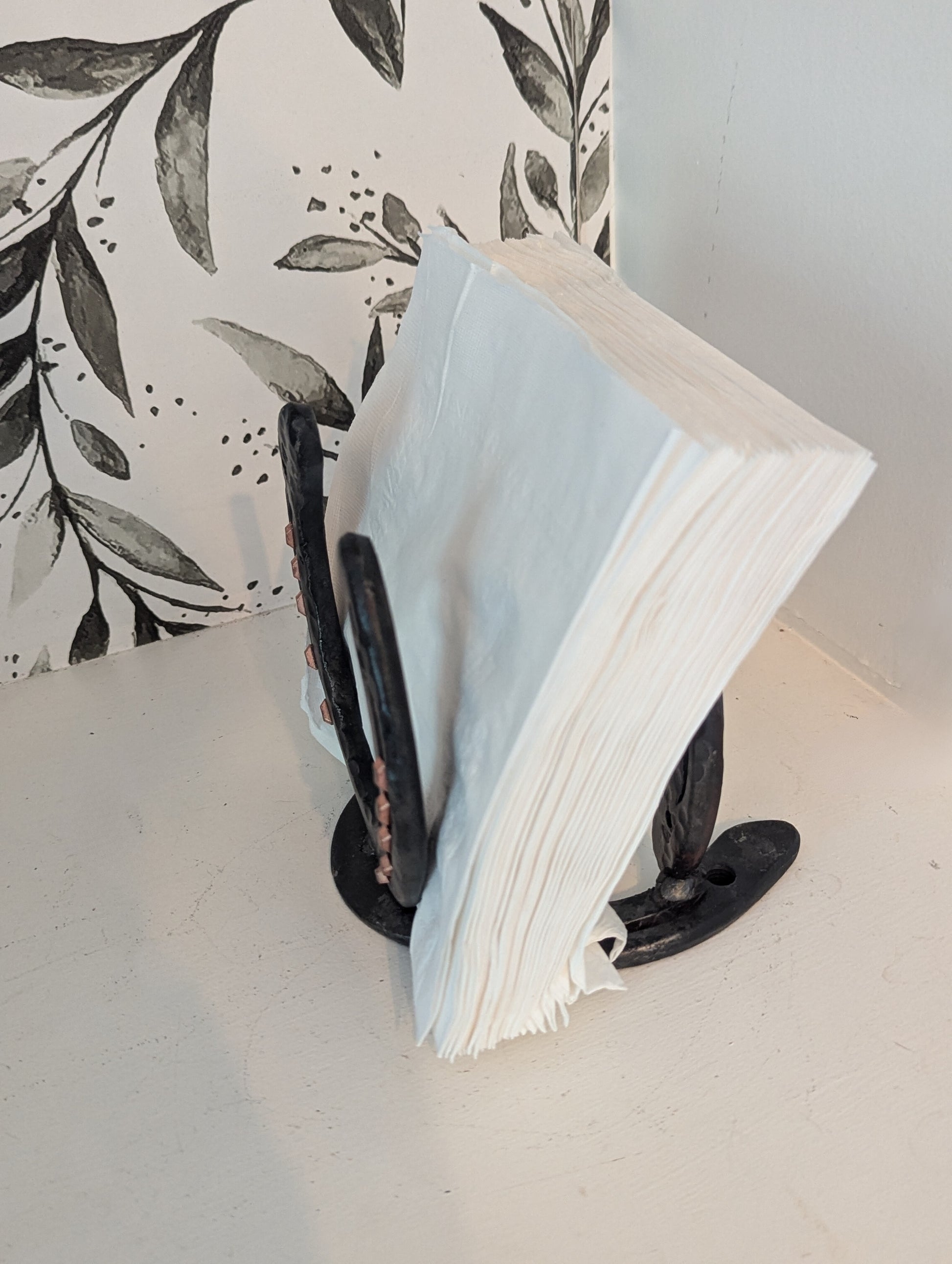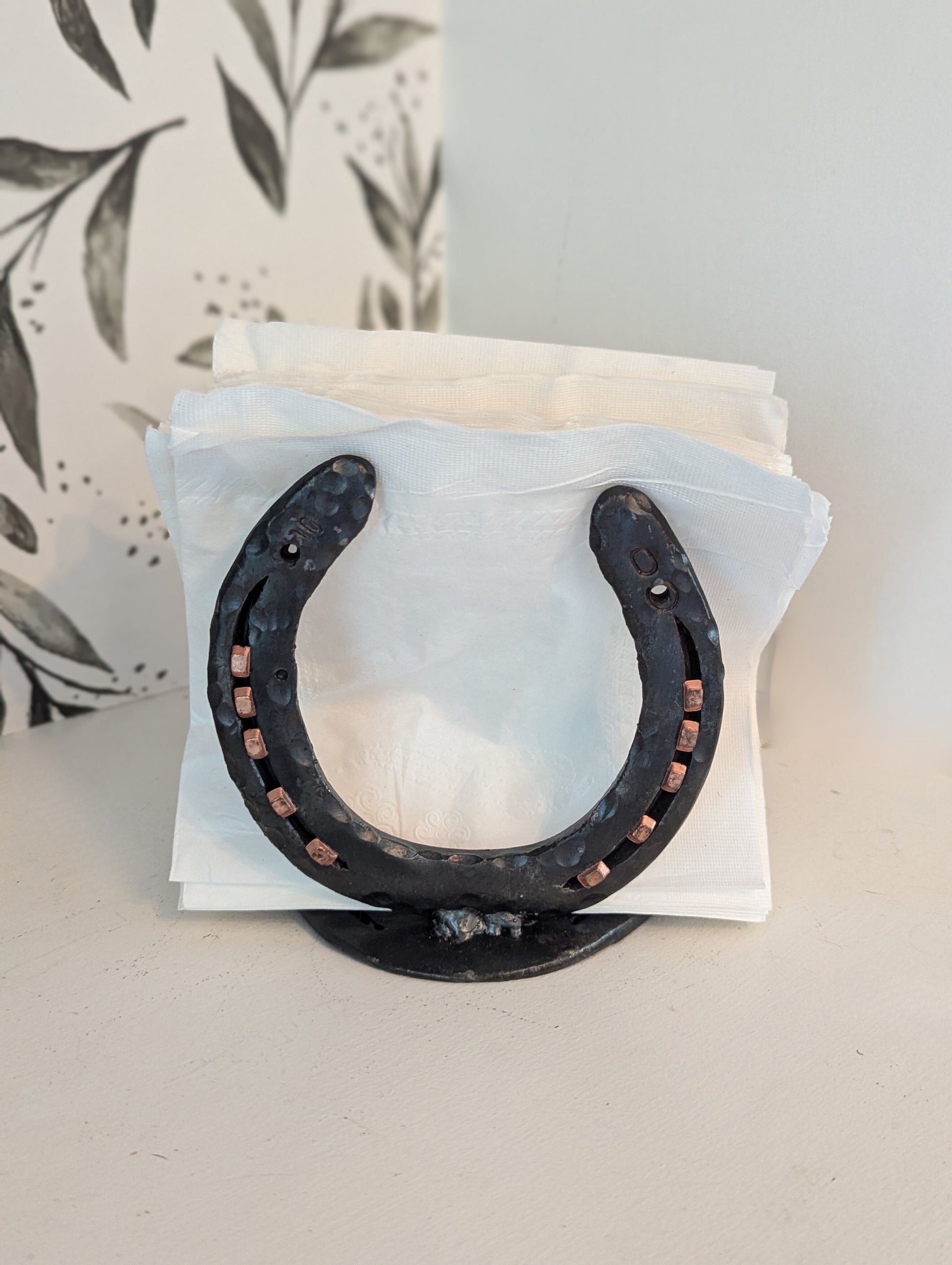 Hand-Forged Steel Napkin Holder with Horseshoe.