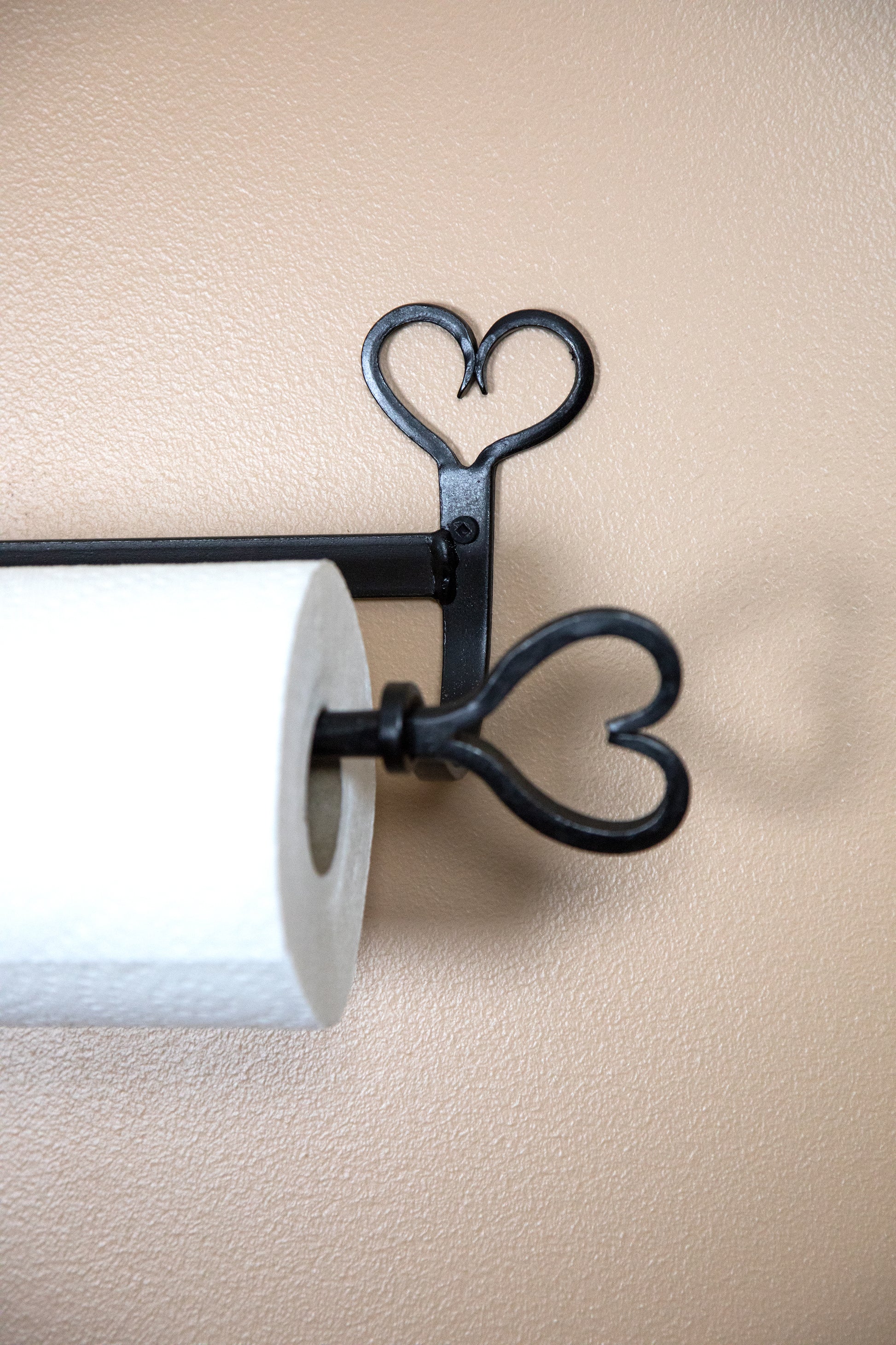 Handmade Wrought Iron Heart Paper Towel Holder.