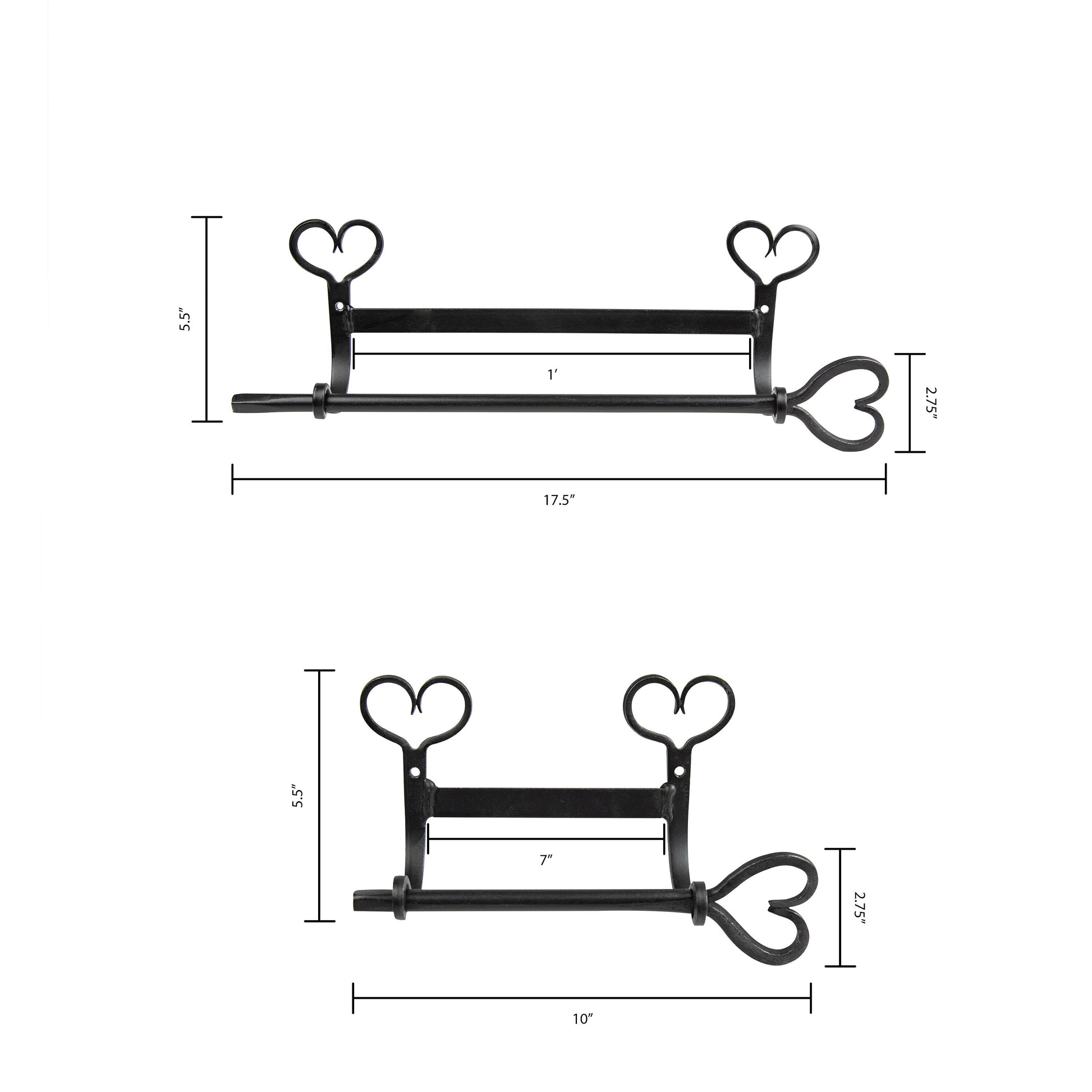 Heart Paper Towel and Toilet Paper Holder Set - Wall Mount - Wrought Iron - Amish made