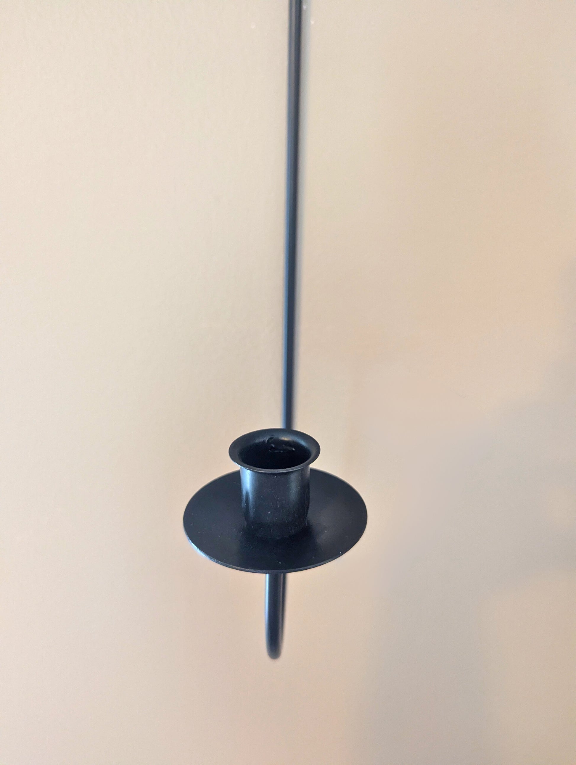 Crafted from durable wrought iron and finished with a sleek black satin paint, this sconce is designed to hold a taper candle securely.