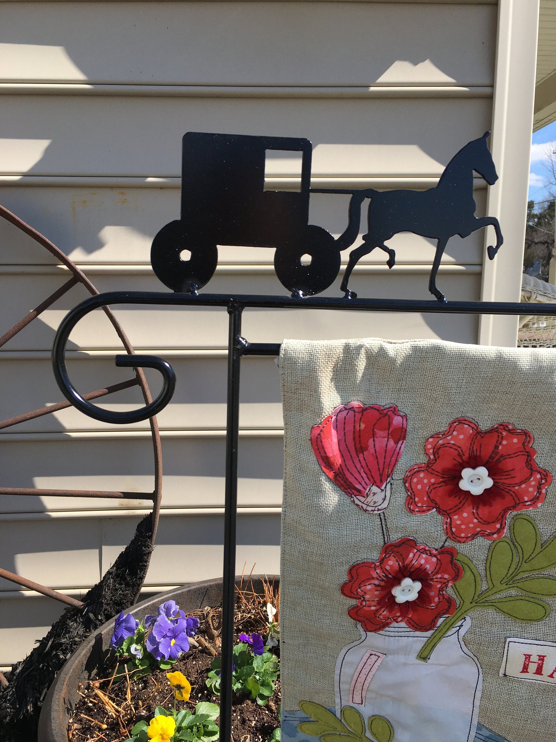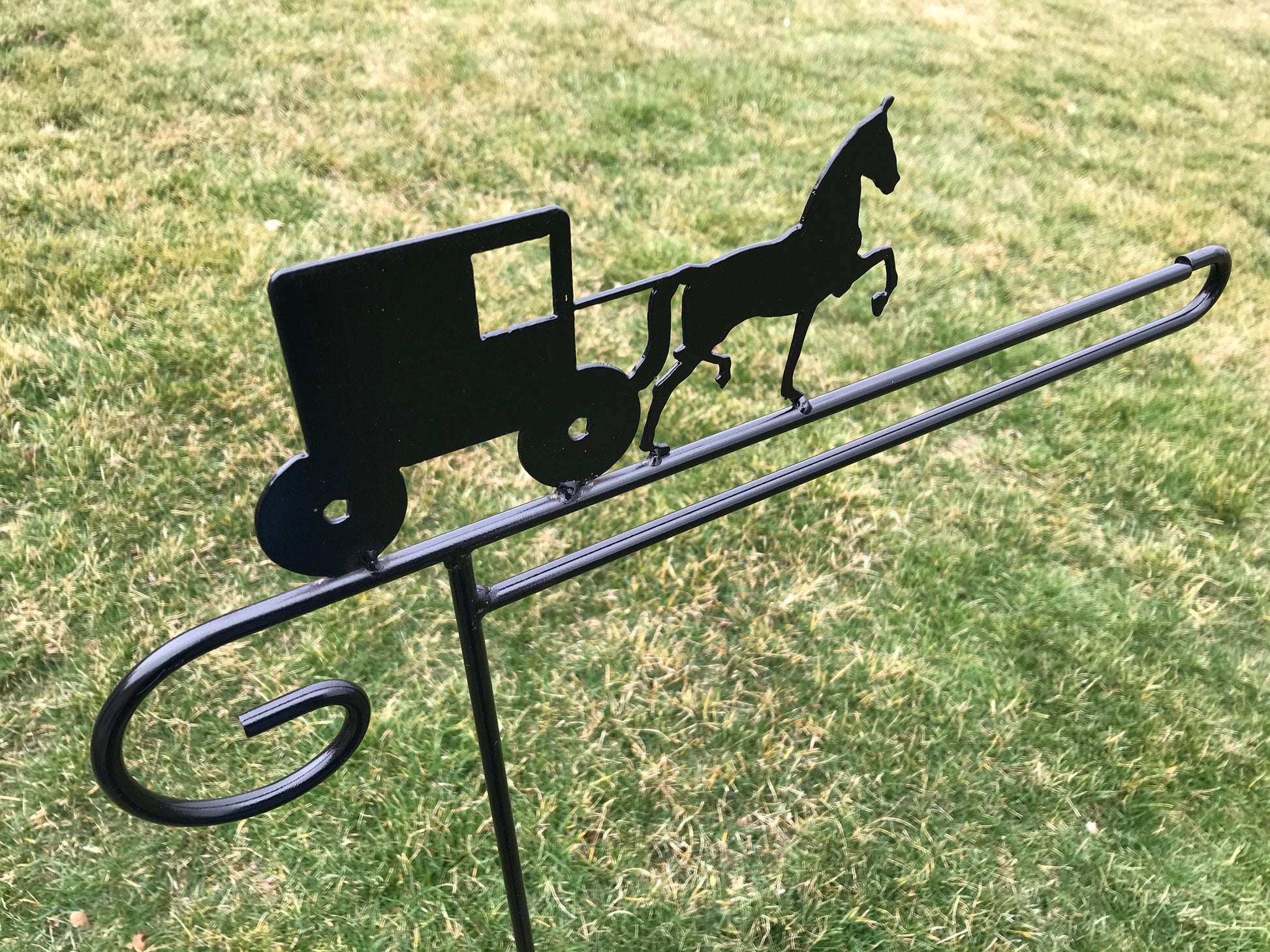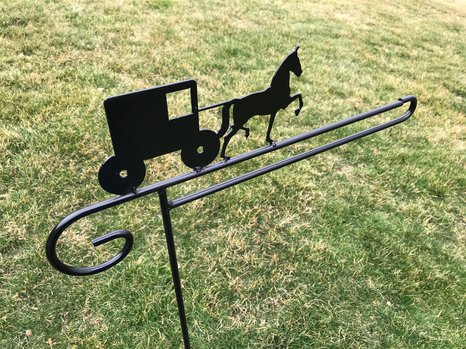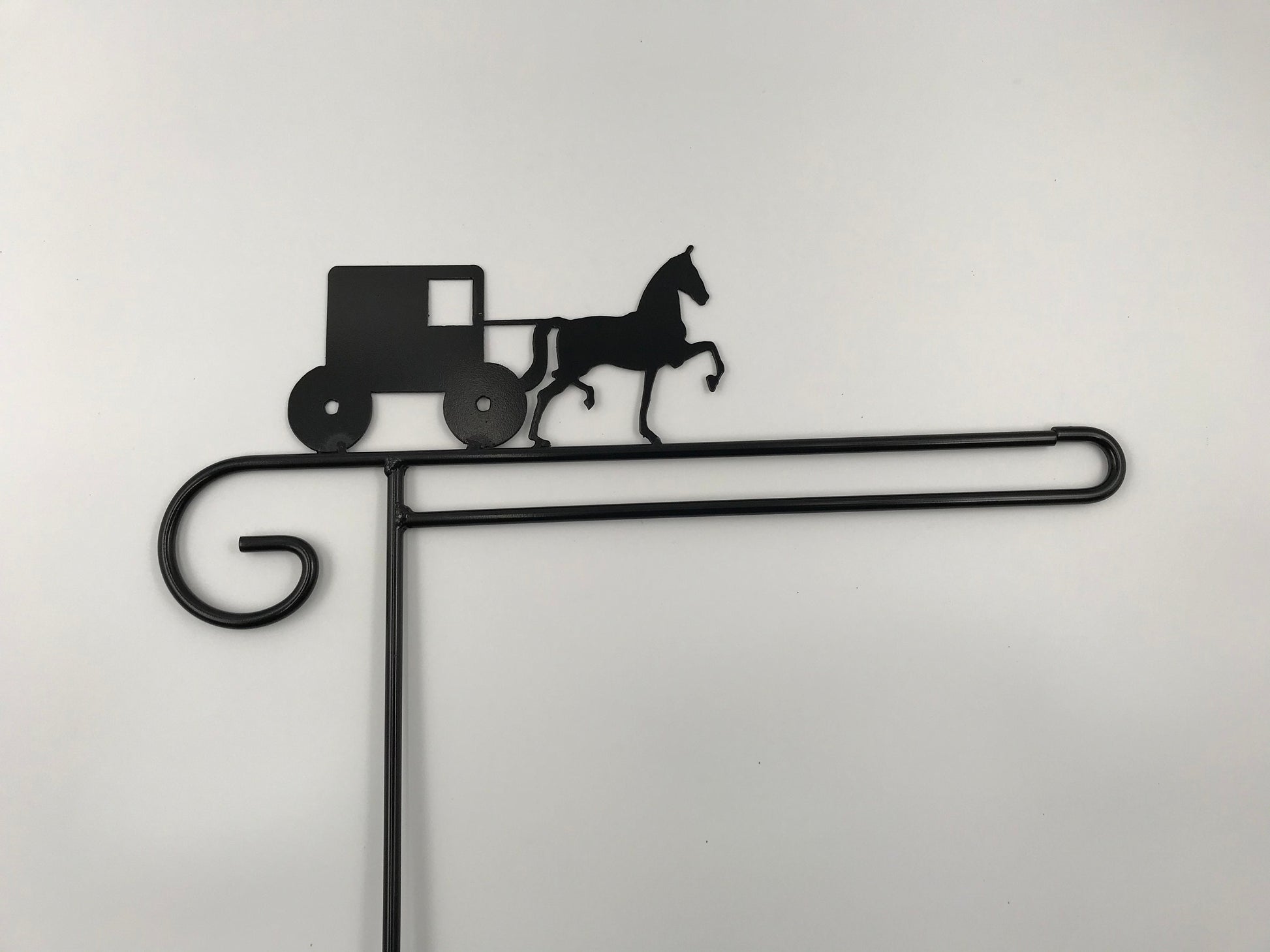 Horse & Buggy Flag Holder Stand - Powder Coated Wrought Iron - Amish made