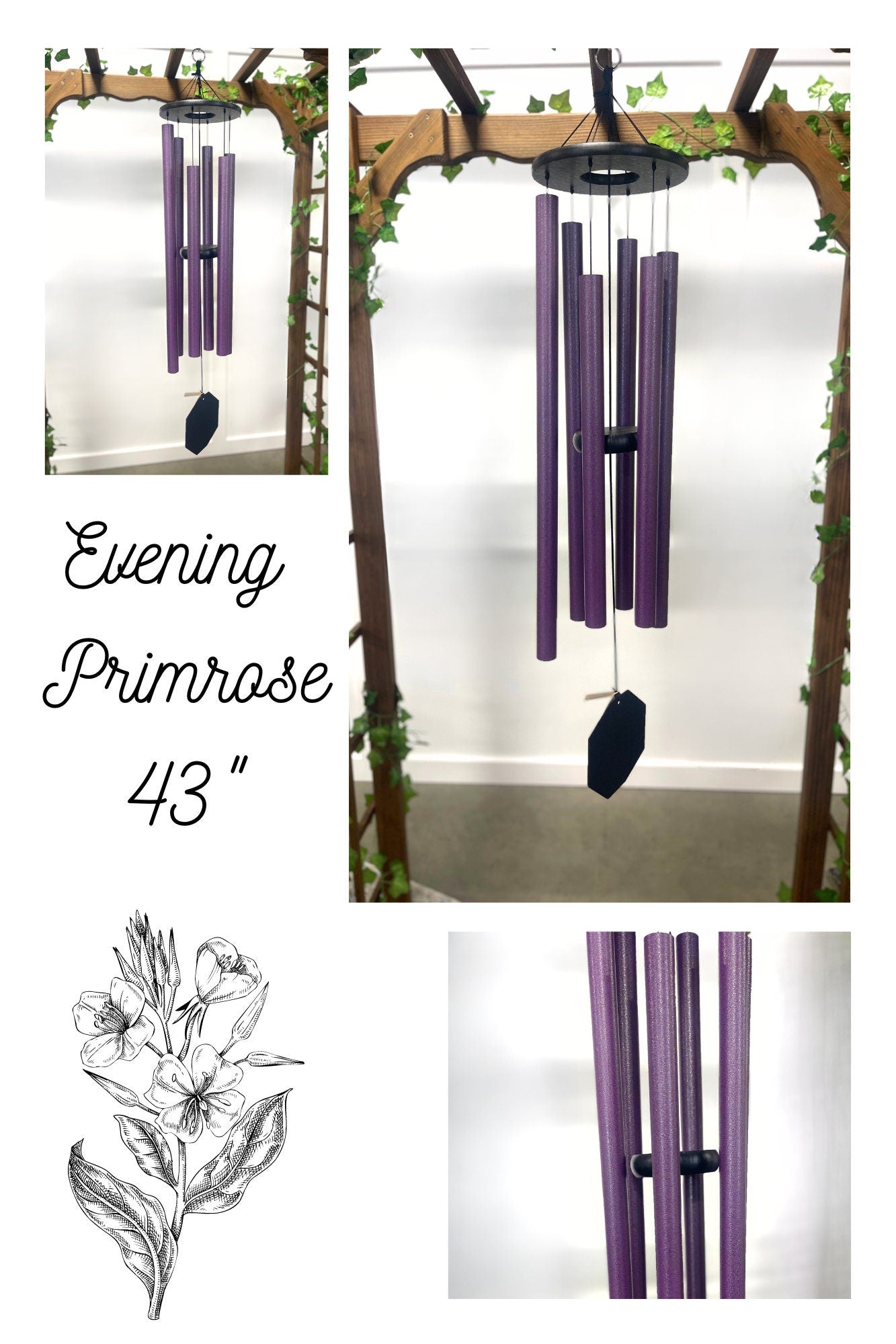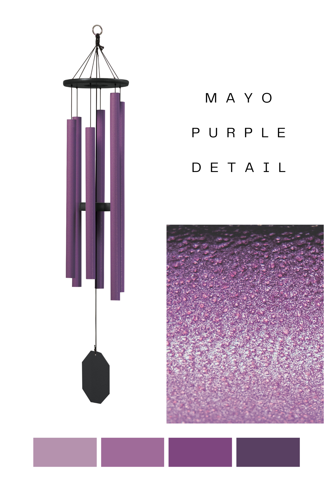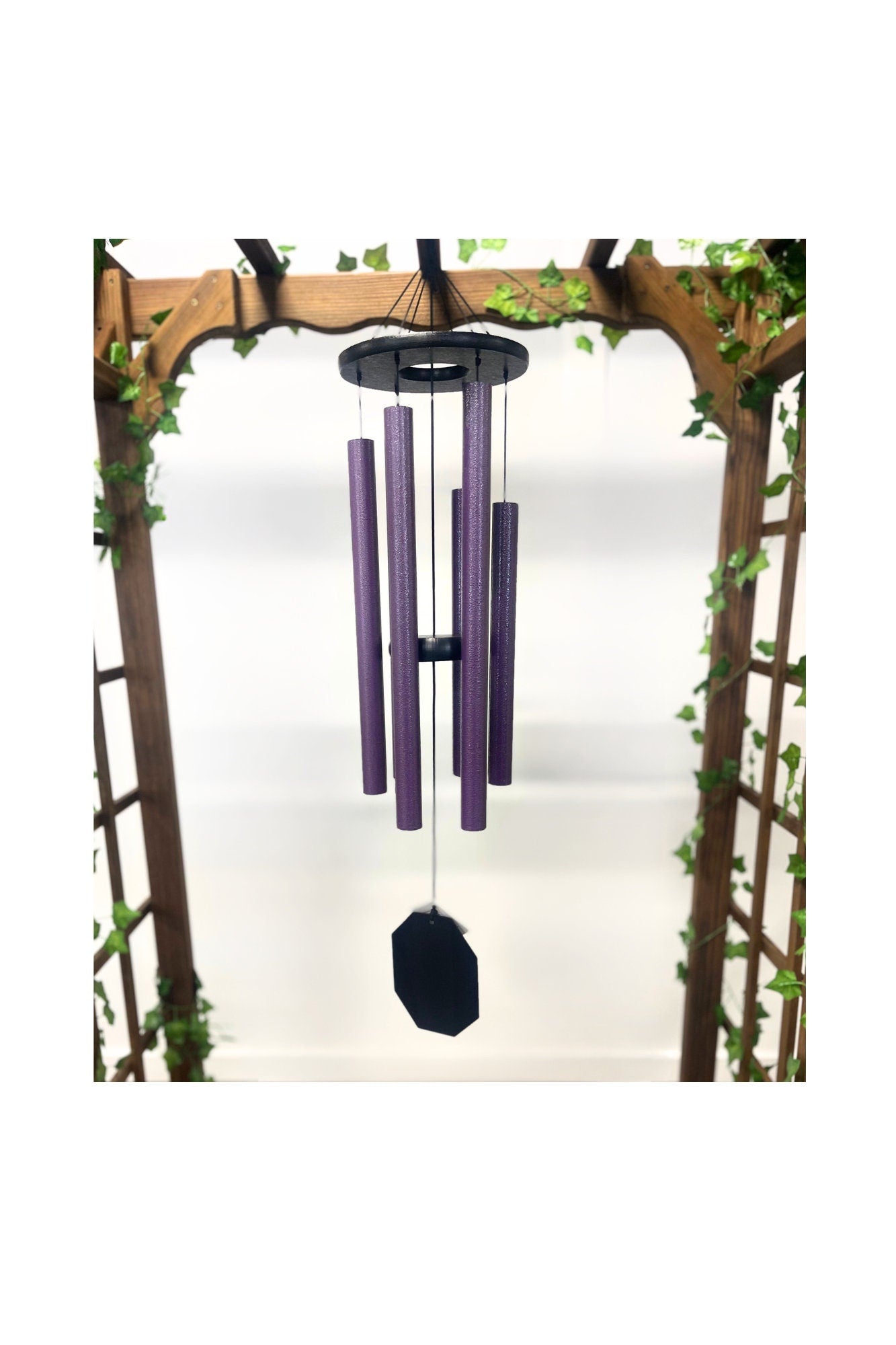 These lavender colored wind chimes were inspired by a peaceful walk through a garden of flowers.
