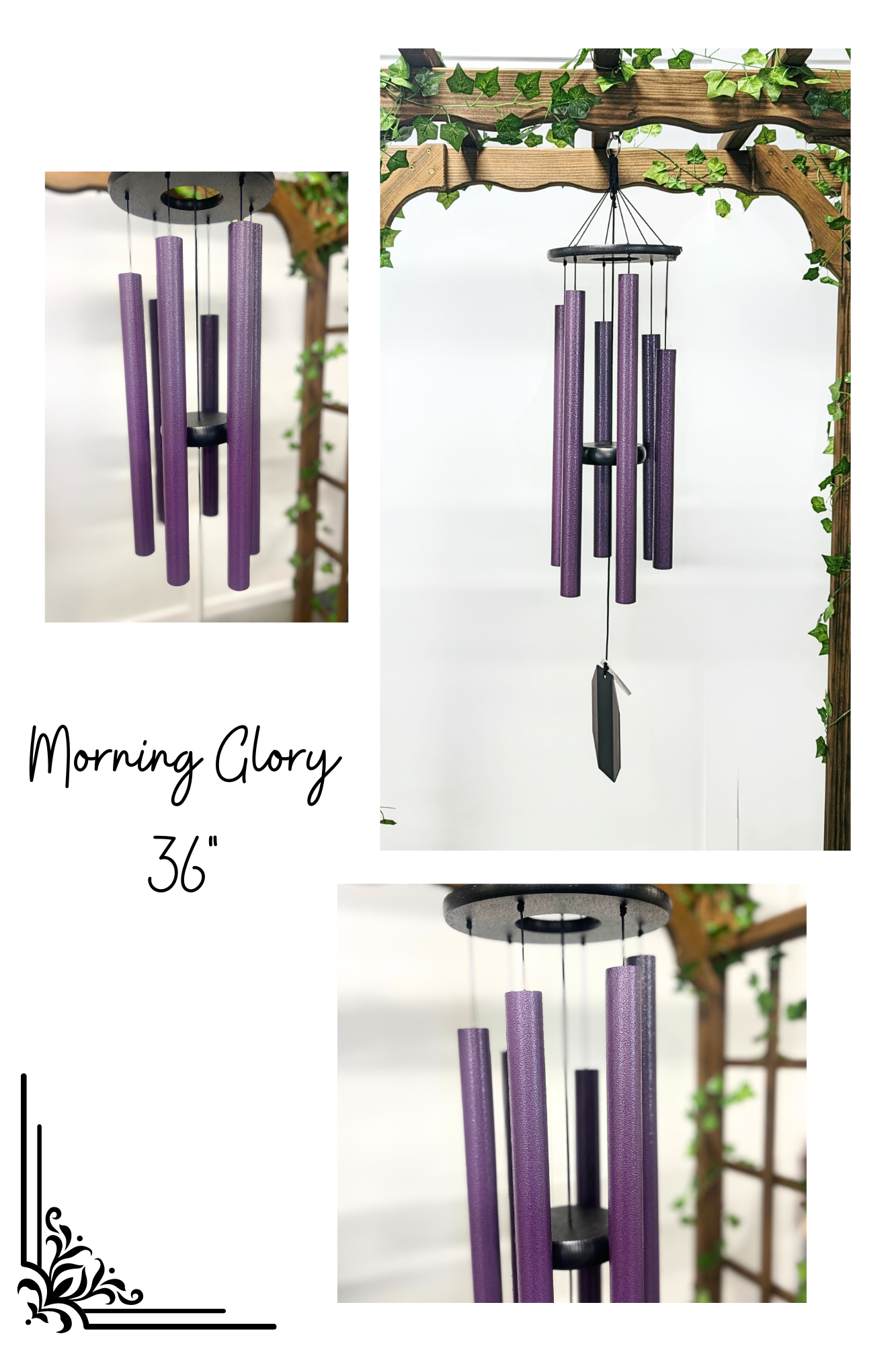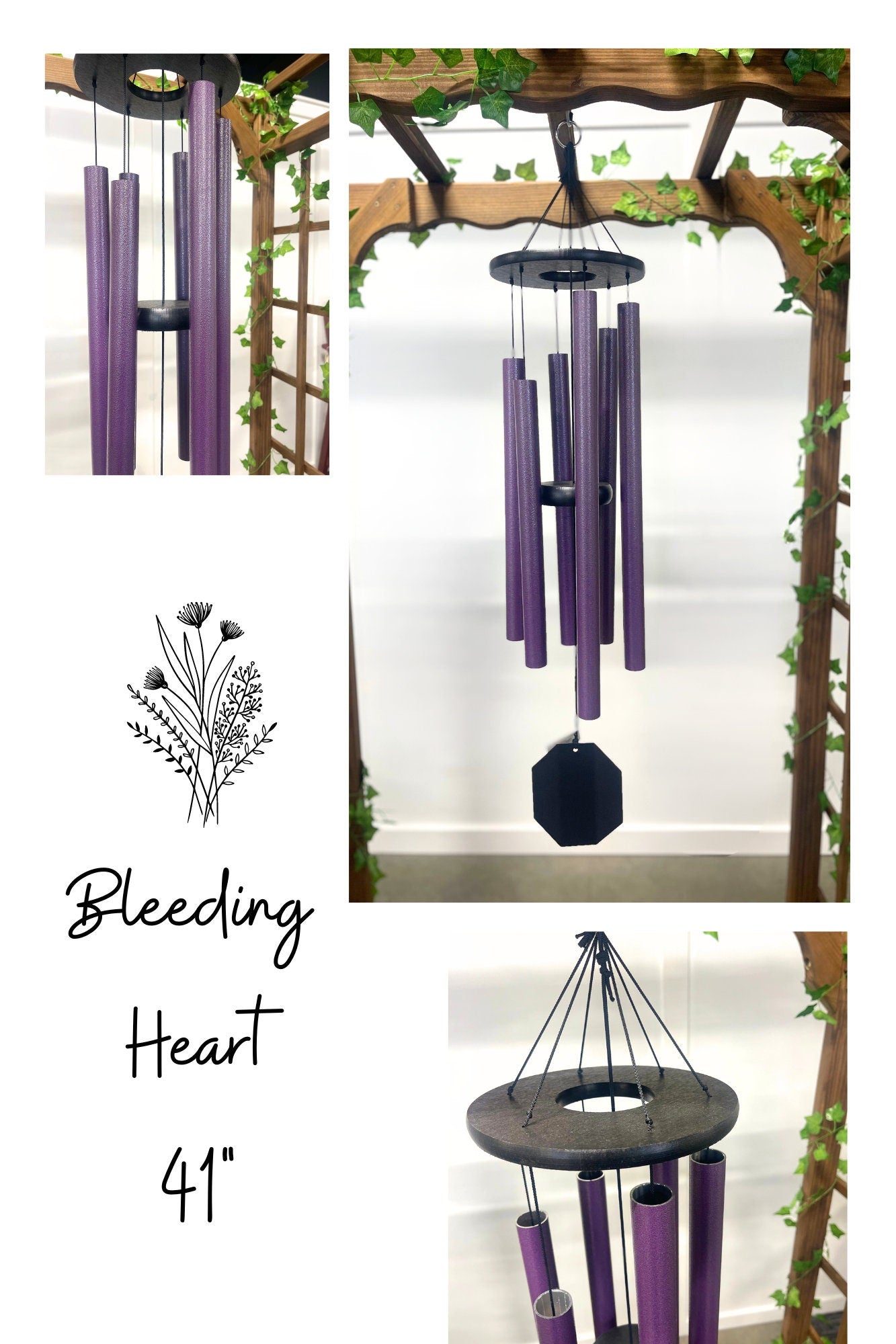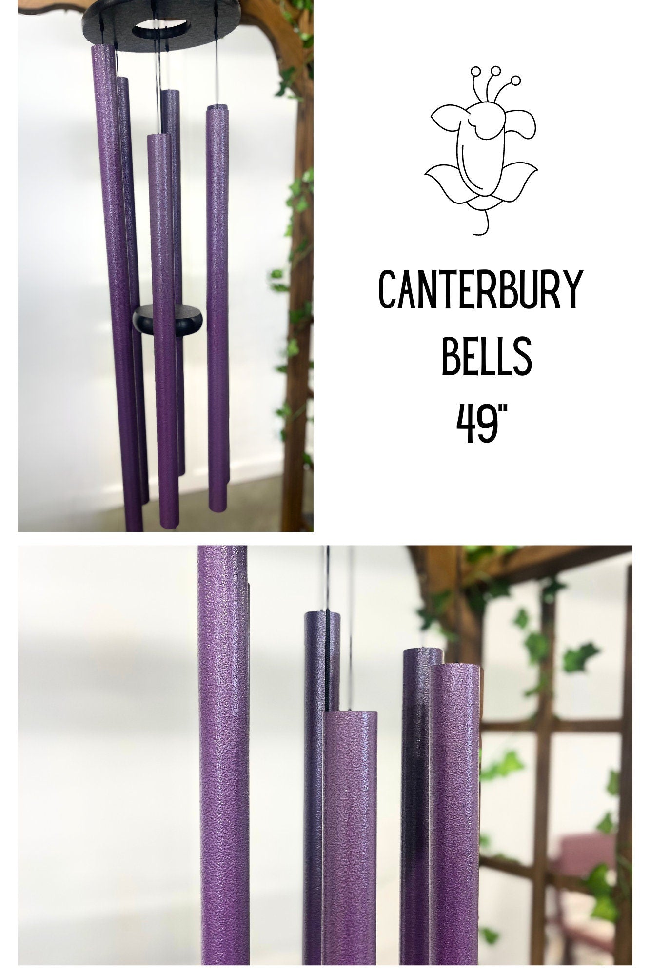 These lavender colored wind chimes were inspired by a peaceful walk through a garden of flowers.