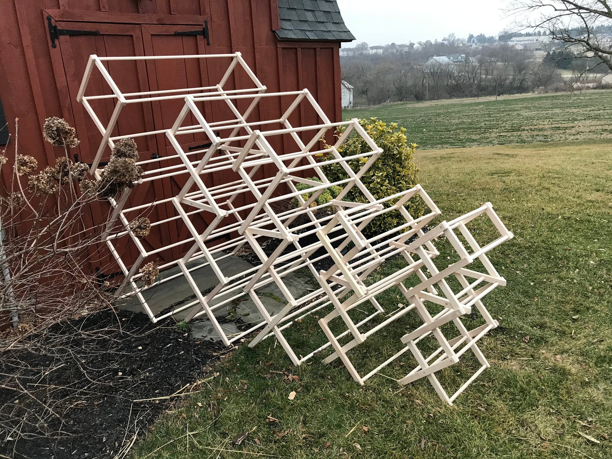 This drying rack is designed to last a lifetime and can be used both inside and outside the home. Our racks are heavy duty with Dowel Rods anchored with steel screws.