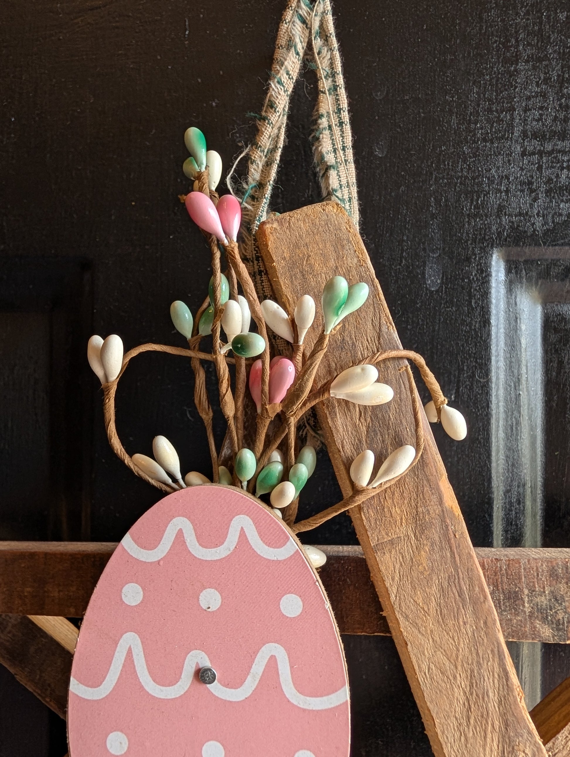 Each star is handcrafted from wood lathe, giving it a naturally rustic texture and one-of-a-kind appeal. It is accented with a bow and Spring/Easter details, making it a subtle and tasteful way to celebrate the season.