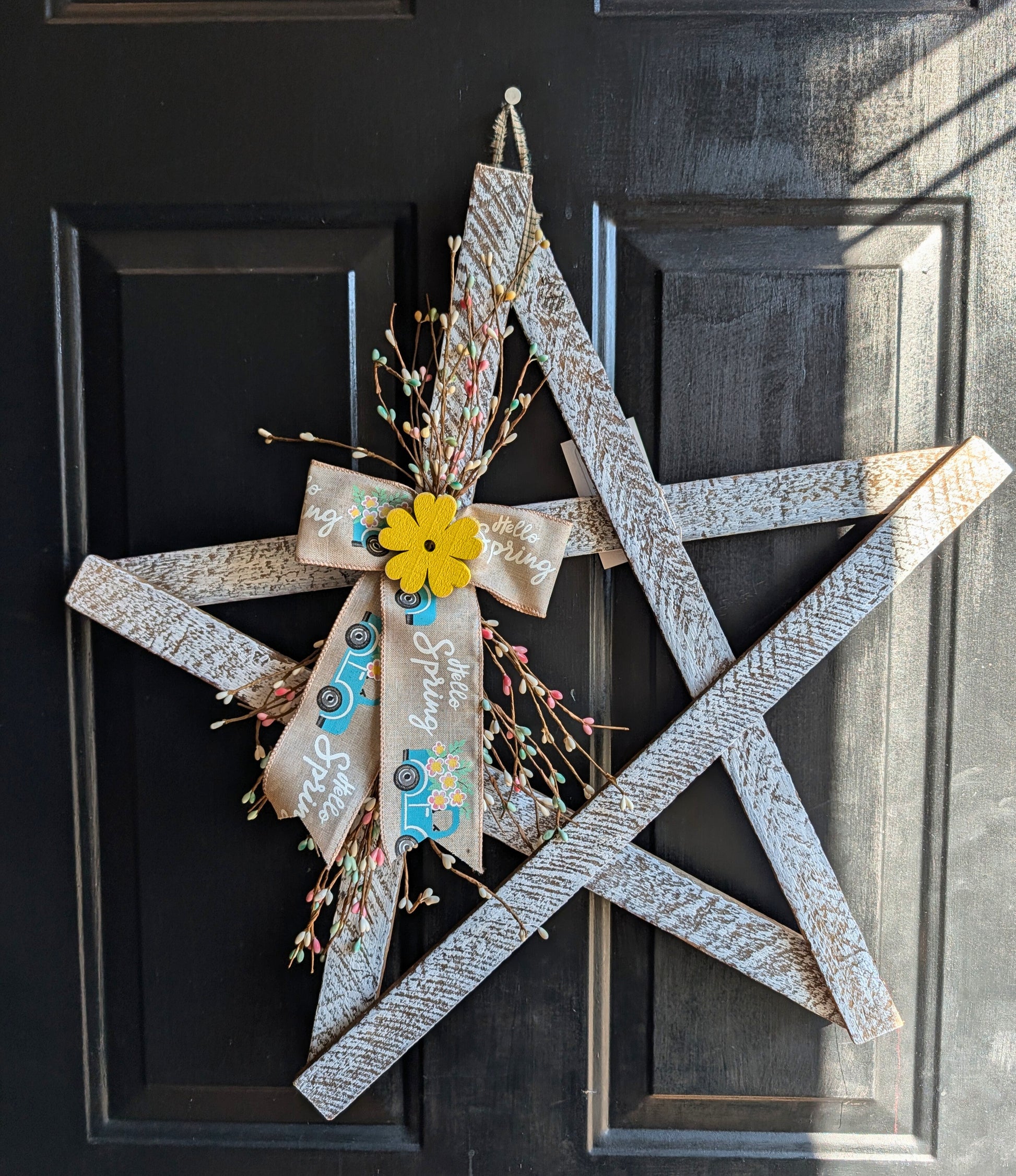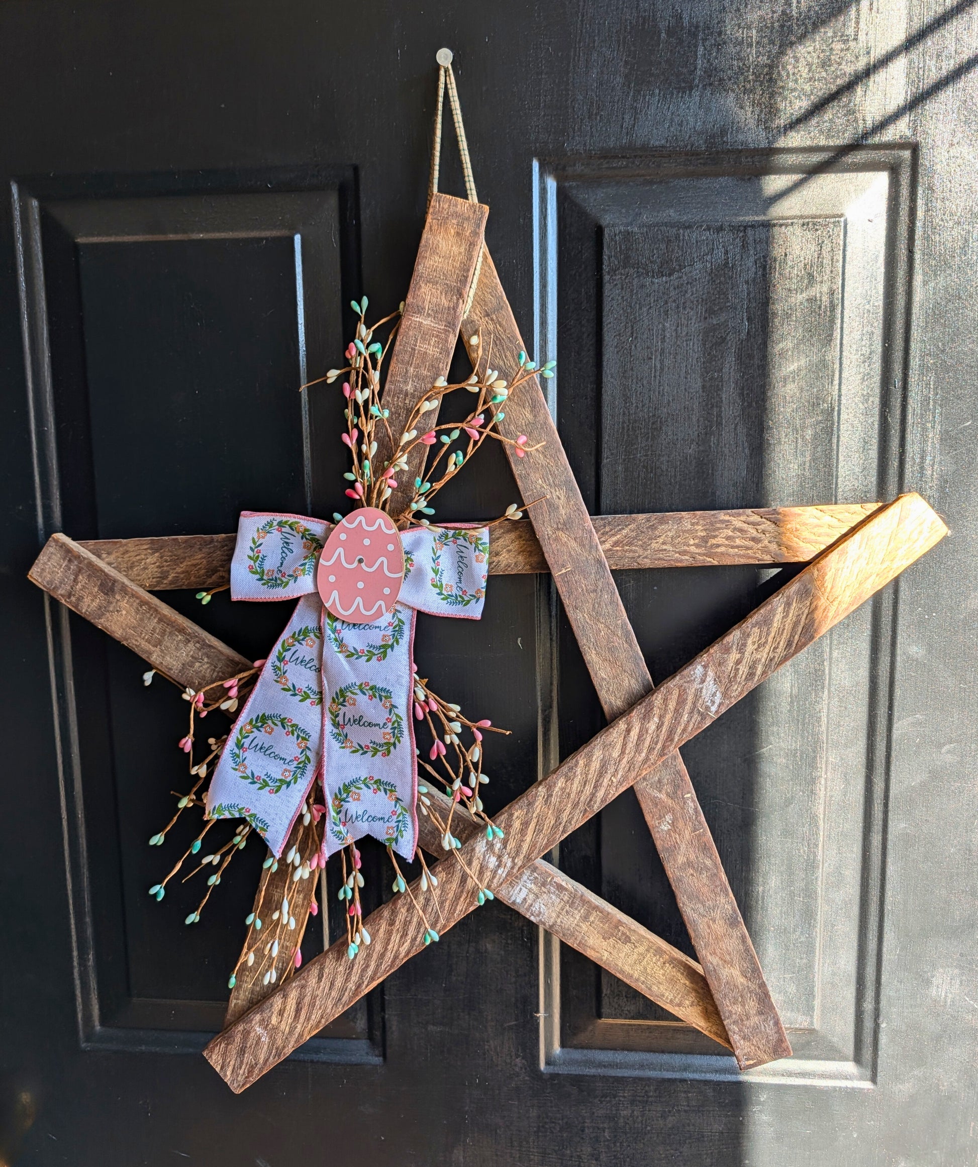 Rustic Wooden Star Door Hanger, Spring & Easter Farmhouse Decor